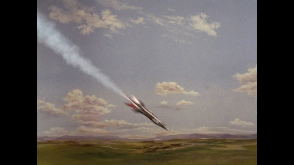 For reasons unknown, the familiar WASP interceptor rockets launched in The Big Gun and prominent in the opening titles are not used in this crisis. Instead, a hatch in the ground flops open and a missile which goes like the clappers hurries on its way to intercept. Bizarrely, the two rockets don’t actually get anywhere near each other before exploding.