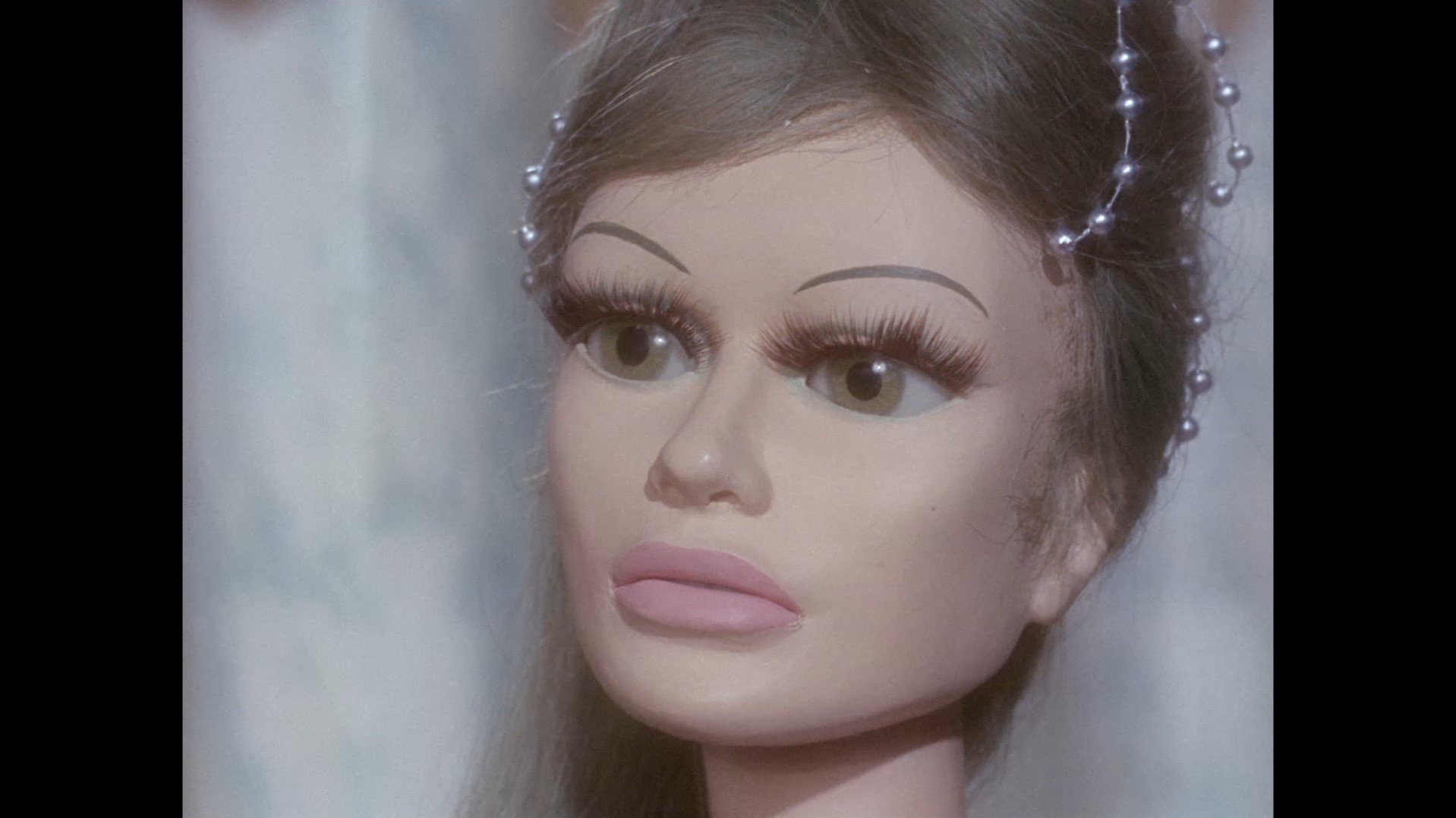 At the end of the song, Troy gets a little surprise. It turns out that Marina can now speak to him via thought transference. It’s short lived, but it’s a significant moment for a number of reasons. It was believed back in Plant of Doom that Marina might have been able to communicate with her father, Aphony, in the same sort of way. Presumably there’s a reason why, in the real world outside of the dream, she isn’t able to communicate with her terranean colleagues telepathically. Then there’s the fact that this is a rare contribution from Sylvia Anderson as a voice artist for the series. Considering her prominence in Supercar and Fireball XL5 as main characters, and then later Thunderbirds, Sylvia’s absence from the cast of Stingray is noteworthy, but probably comes down to just how busy she was with the many other aspects of the production, including dialogue direction. Then there’s the fact she perhaps hadn’t quite gotten through to the writers yet that they could write some decent-sized roles for female guest characters. Finally, there’s probably one very practical reason why Marina speaks without moving her lips – the puppet probably doesn’t have a solenoid fitted which allows her lower lip to move, because 99% of the time she wouldn’t need one.