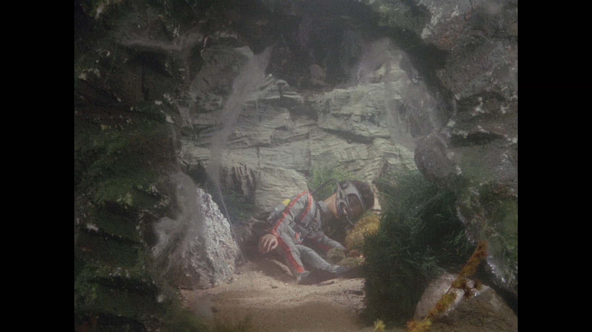 What happens next is honestly a bit difficult to explain. There’s a noticeable cut, and Troy falls down a hole. He falls… underwater. Maybe an incredibly strong current pulls him down? Also, assuming Troy hasn’t started hallucinating just yet, those few gems on the sea bed look pretty real to me, and aren’t the plain, ordinary seashells which Troy reveals later. Or has the hallucination already started? This is probably one of those moments that read perfectly fine in the script but was a bit fiddly to demonstrate on screen.