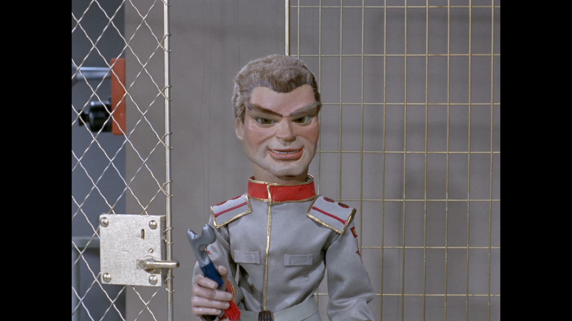 For this final shot of Misen, it looks like some additional frown lines have been painted on between his eyebrows, just to convey that he’s a bit cheesed off about being in prison. So we never learn who was running the whole show and therefore Troy doesn’t get to run off in Stingray and blow up some aliens. The traitor plot is all nicely wrapped up and that will just have to be good enough.