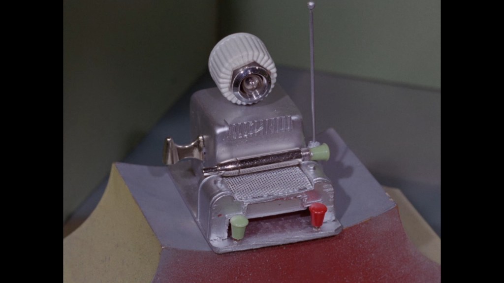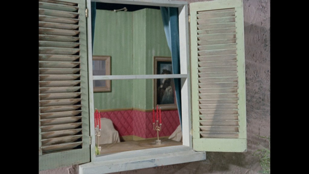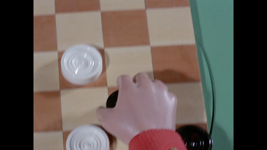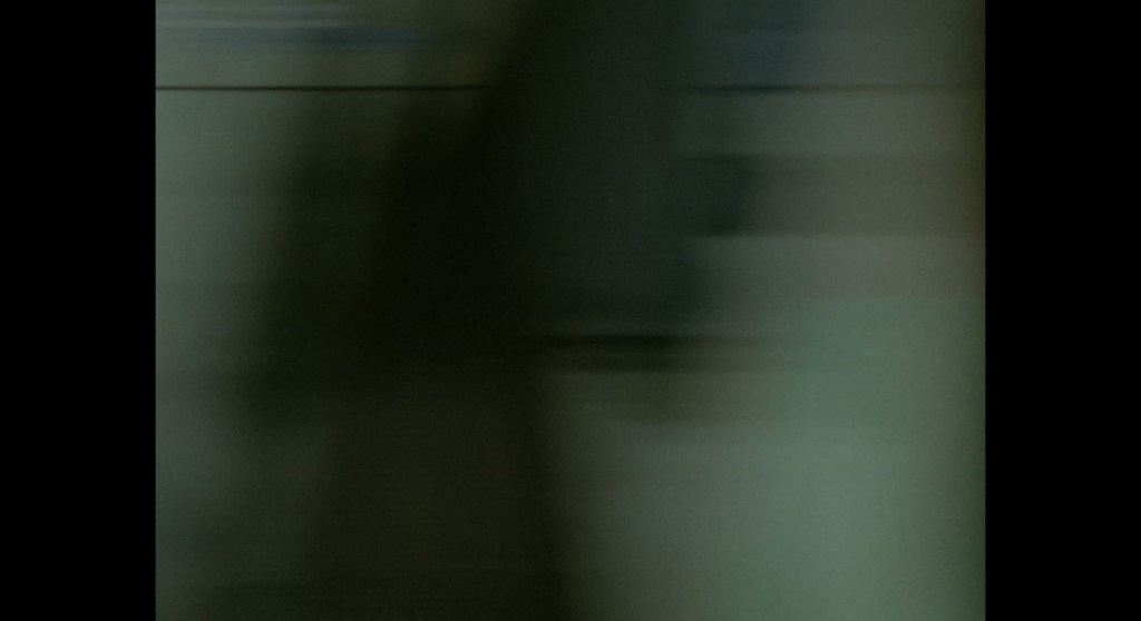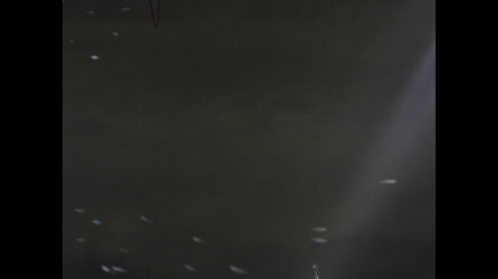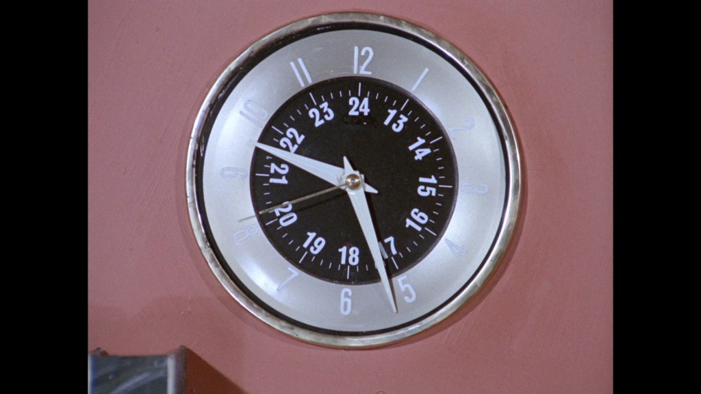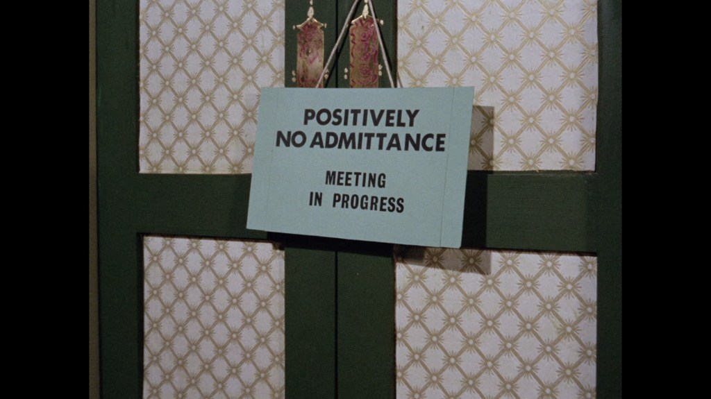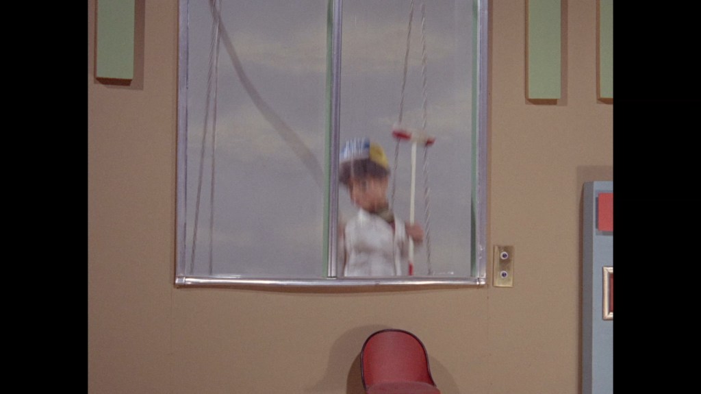 The whip pan transition which throws us into the next scene doesn’t give us much to look at this time around. I normally like to examine these things for rare glimpses at the studio or sets. This dark smudge could be a person, I suppose?