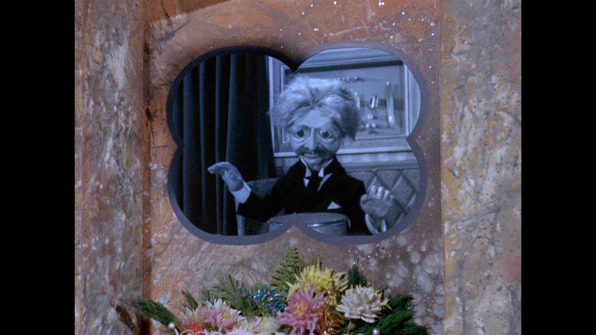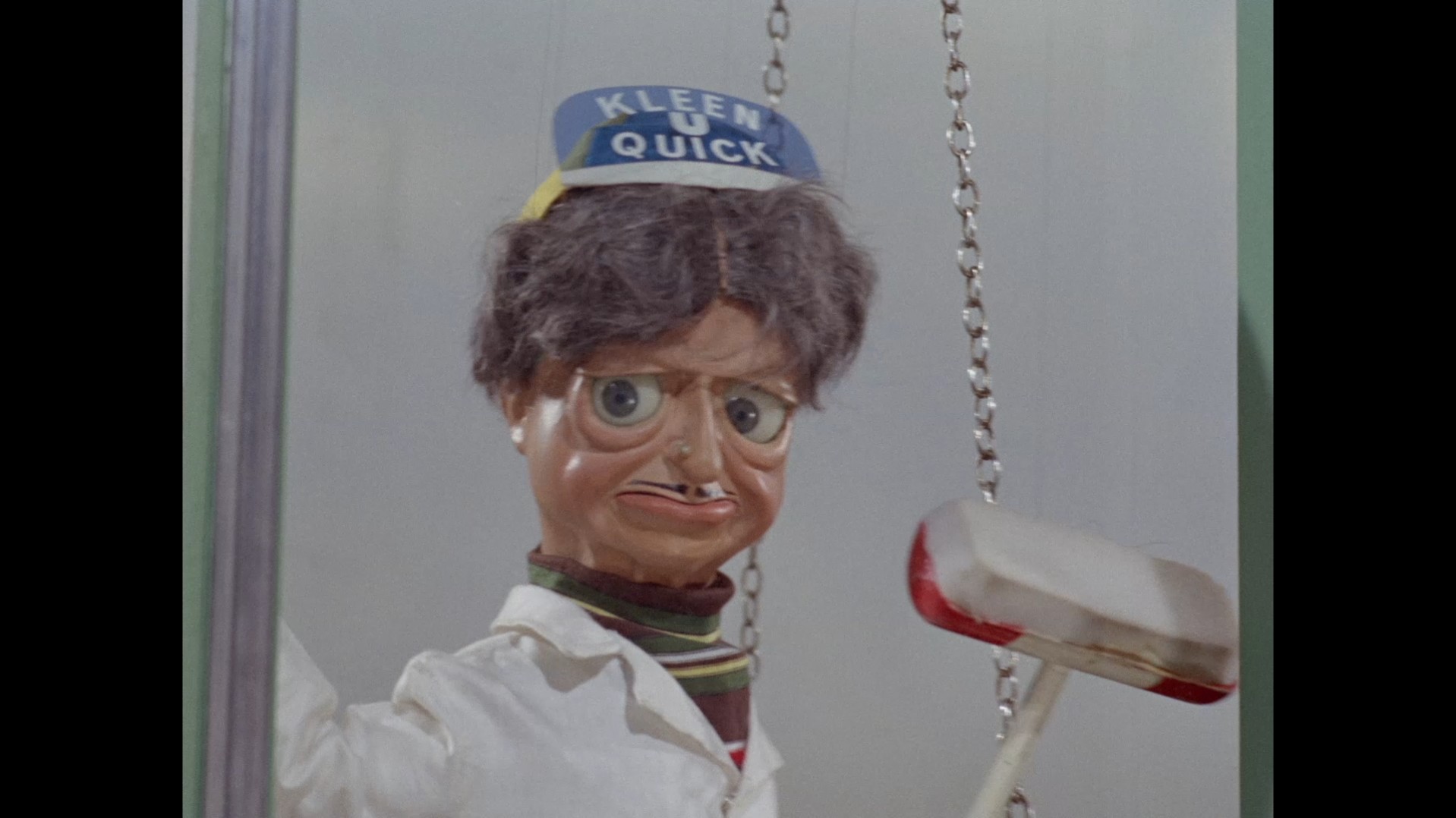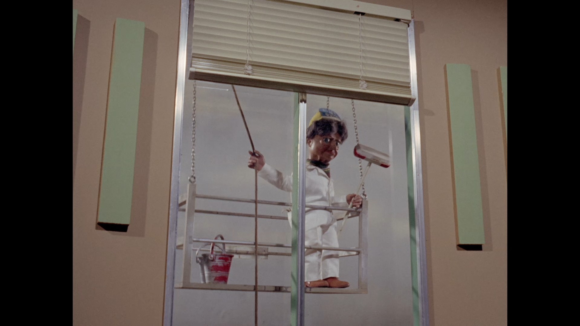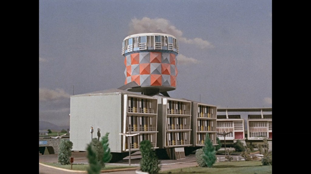 The whip pan transition which throws us into the next scene doesn’t give us much to look at this time around. I normally like to examine these things for rare glimpses at the studio or sets. This dark smudge could be a person, I suppose?