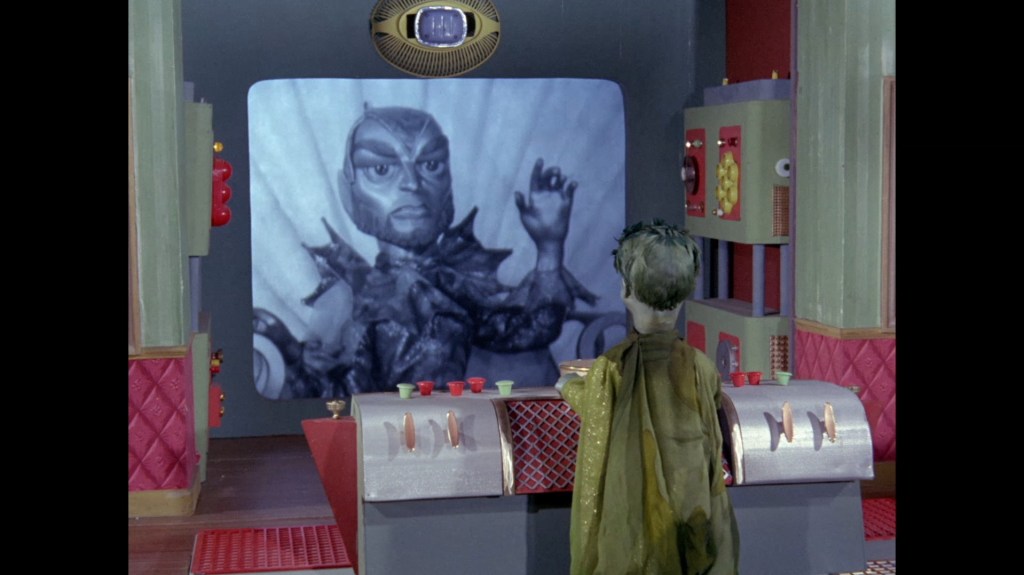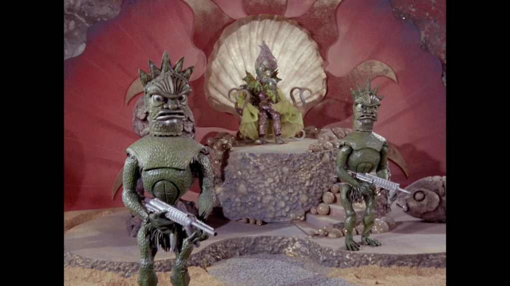 Titan waits impatiently for his call to be answered. If I may, I want to keep banging on about X20’s piano-playing, and the utter silence of this scene in the throne room by comparison. I get the sense that culture isn’t a big priority of Titan’s. We’ve learned previously that Pacifica, not Titanica, is the cultural capital of all the underwater cities. We’ve also just seen that X20 is a talented piano player, whose music is interrupted by his duty to Titan. Then there’s the fact Titan chooses to live surrounded only by Aquaphibians, who wouldn’t know culture if it jumped up and down in front of them playing Beethoven’s 5th Symphony on a kazoo. Fast forwarding to Titan Goes Pop, it’s also made clear that Titan doesn’t even understand the concept of popular music or its purpose. So what does all this add up to? Nothing much, but I like the idea that among Titan’s worst character traits, he happens to be a complete philistine.