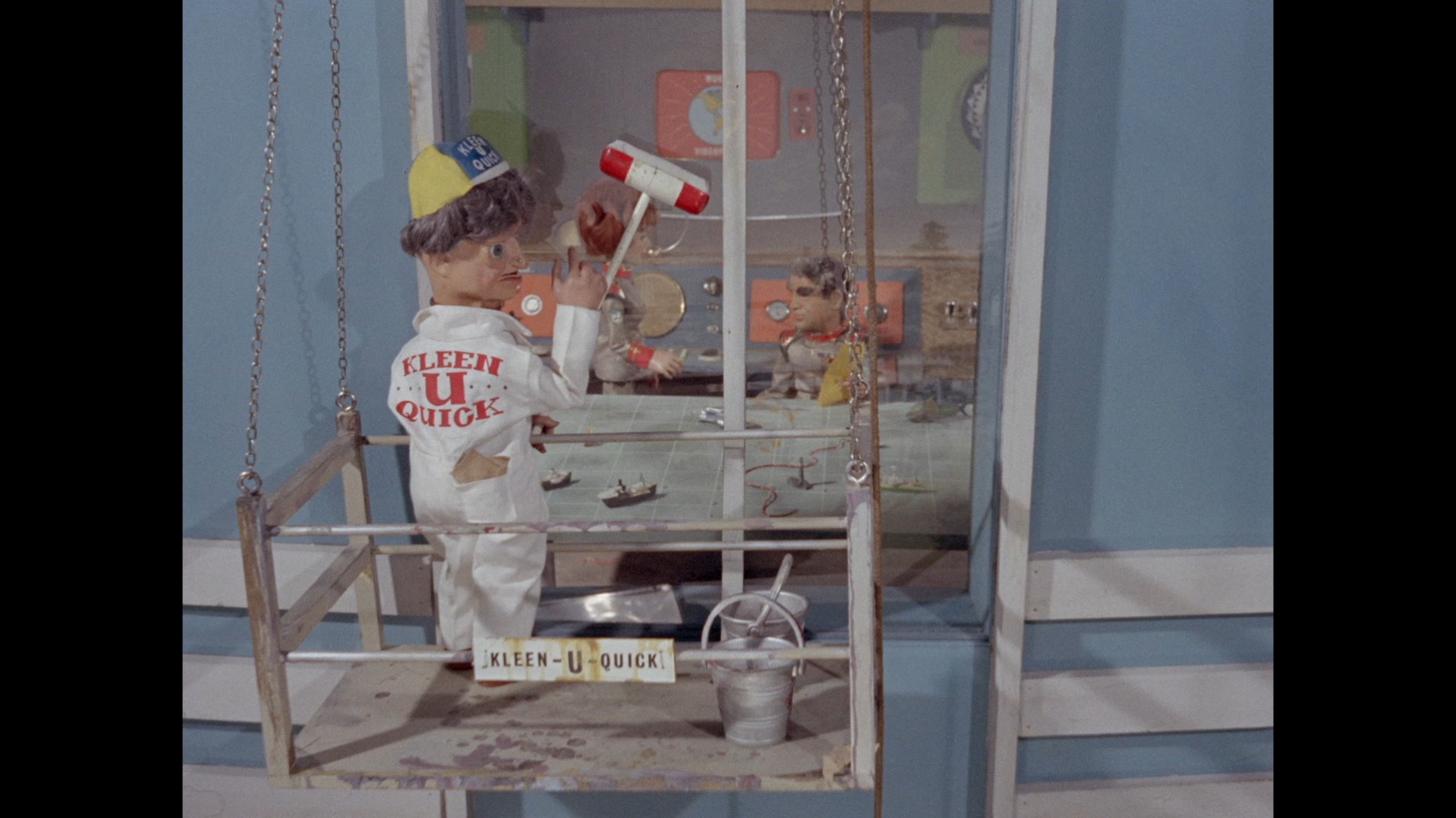 Phones is sat in a corridor feeling sorry for himself while two photographers gather in front of him. One of them is portrayed by the Jacques Jordan puppet from The Man From The Navy, while the other is the news reporter last seen in Tom Thumb Tempest.