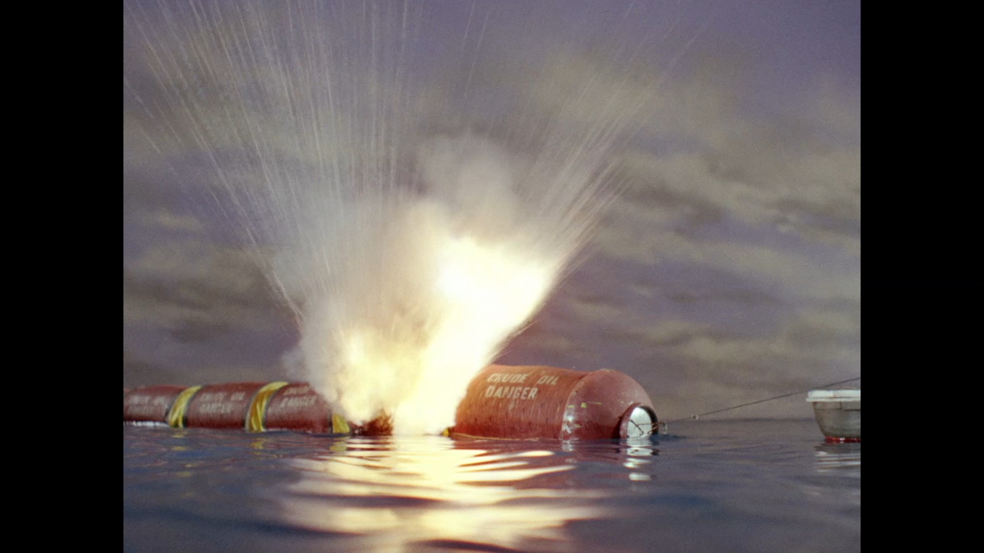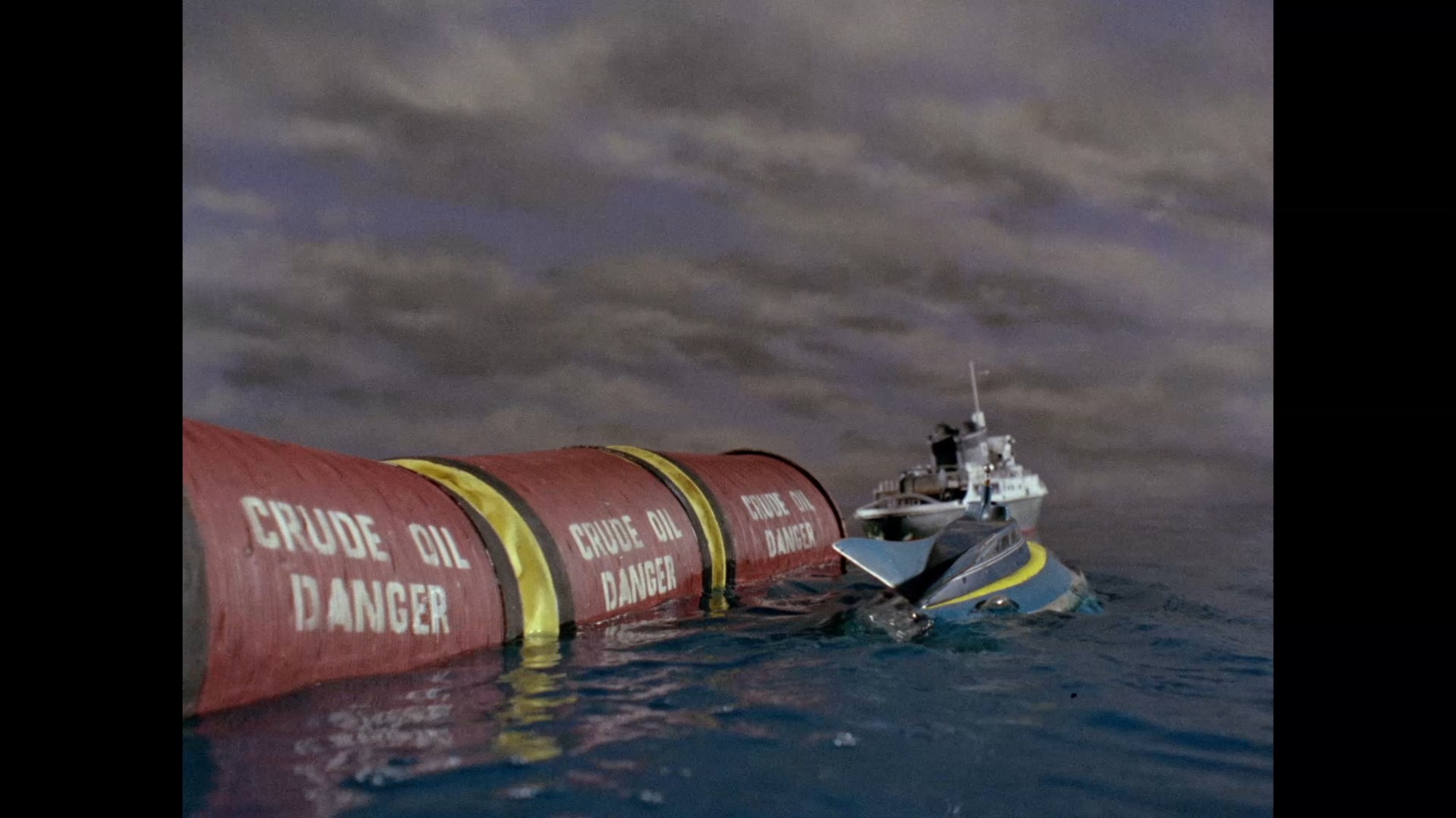 Enjoy these magnificent shots of the oil transporter passing through set to Barry Gray’s score while I deliver my hurriedly thrown together lecture. Transporting oil by boat had been a thing since the mid-19th century. To keep up with the demand for oil as the world became more and more mechanised, particularly during the World Wars, the most efficient way to transport oil was to build larger and larger ships and more of them. By 1962, the 106,000 long ton vessel, the SS Manhattan had been built in the United States – the largest ocean-going vessel ever constructed at that time. Transporting oil in large, powered tankers had its inherent dangers. If the load leaked, either into the water or into the engines, there was potential for explosive and environmental disasters. Then there was the issue of developing a hull strong enough to contain so much liquid which was prone to sloshing about during transport and could cause the ship to capsize. The solution which Dennis Spooner has run with in his script was inspired by the Dracone barge developed in 1956 by Professor William Hawthorne. Just like we see in the episode, Hawthorne’s concept uses a single, small vessel to tow a flexible tube containing the liquid cargo. This idea was developed further more recently into the ‘Spragg Bag’ which held the primary aim of transporting fresh water to areas with limited access, using long trains of waterbags connected by zippers for seemingly endless transport possibilities. The Dracone Barge is still used today, not as a primary means of transporting fuel around the world, but as an important aid to cleaning up oil spills from larger tankers, and for moving smaller loads for military purposes.