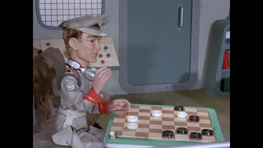 Troy brings his colleague back down to earth with news that a routine scan of the surrounding ocean is required. Phones reckons there’s nobody around for 10 miles, by which he means there’s no bloomin’ need to interrupt his fun with the checkers board, and Troy should naff off and bother somebody else. Speaking of which, Marina is absent for this mission, because otherwise Phones would have someone to play with and that would upset the point of this scene.