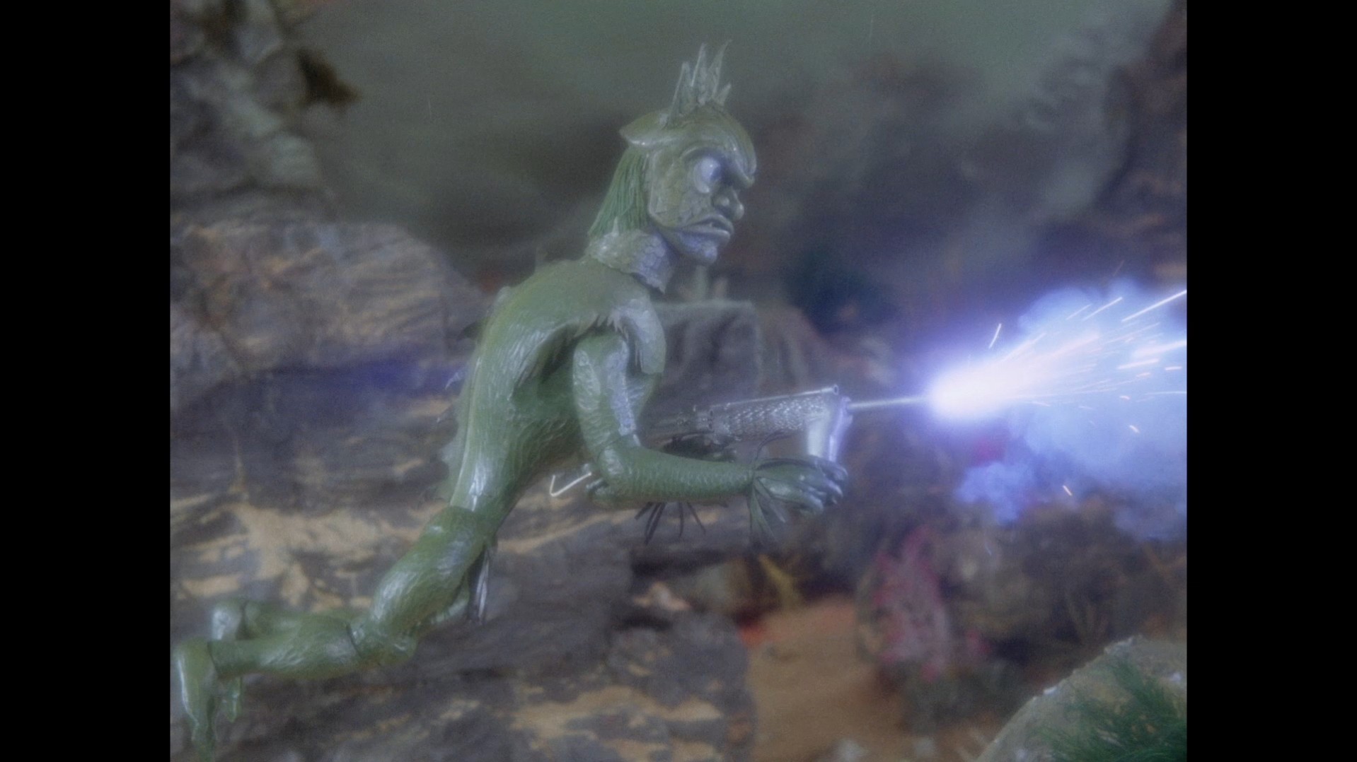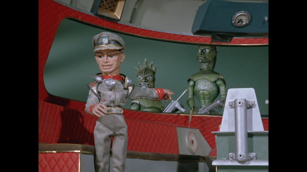 The race back to Stingray is thrilling! I love to imagine the puppeteers running up and down the bridge whilst trying to keep the motion smooth. Troy dives through Stingray’s hatch with great agility.