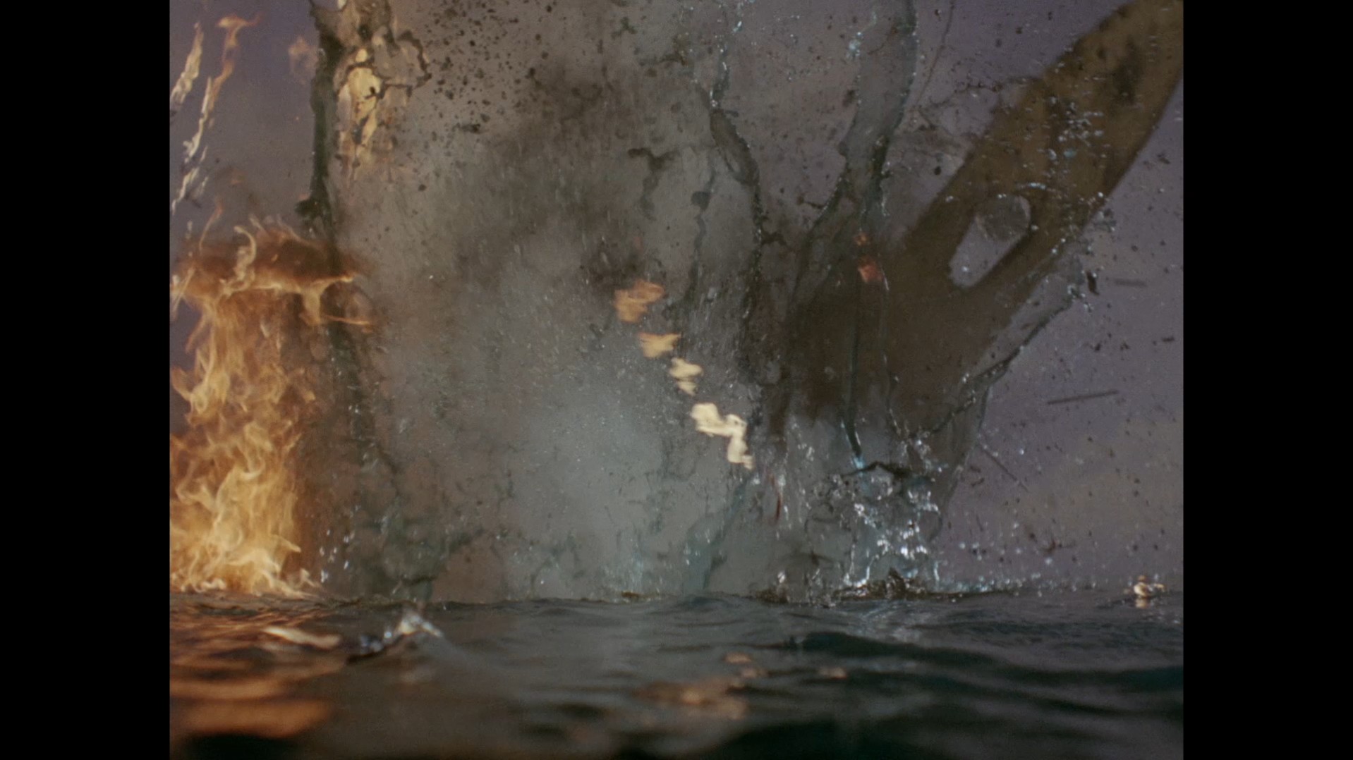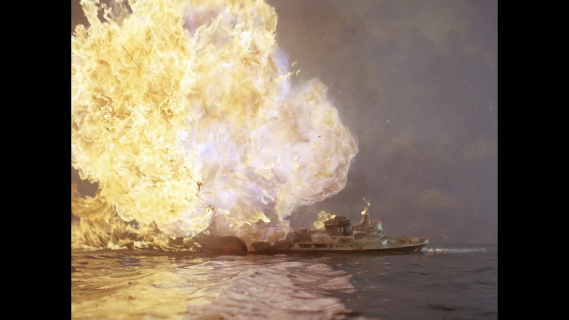 The tow vessel is absolutely overwhelmed by the inferno. There’s no doubt that this is one of the finest special effects sequences we’ve seen so far. The explosions are absolutely terrific and definitely look like the real deal, rather than miniature pops and bangs. It’s an uncontrollable storm of fire which cannot be stopped.