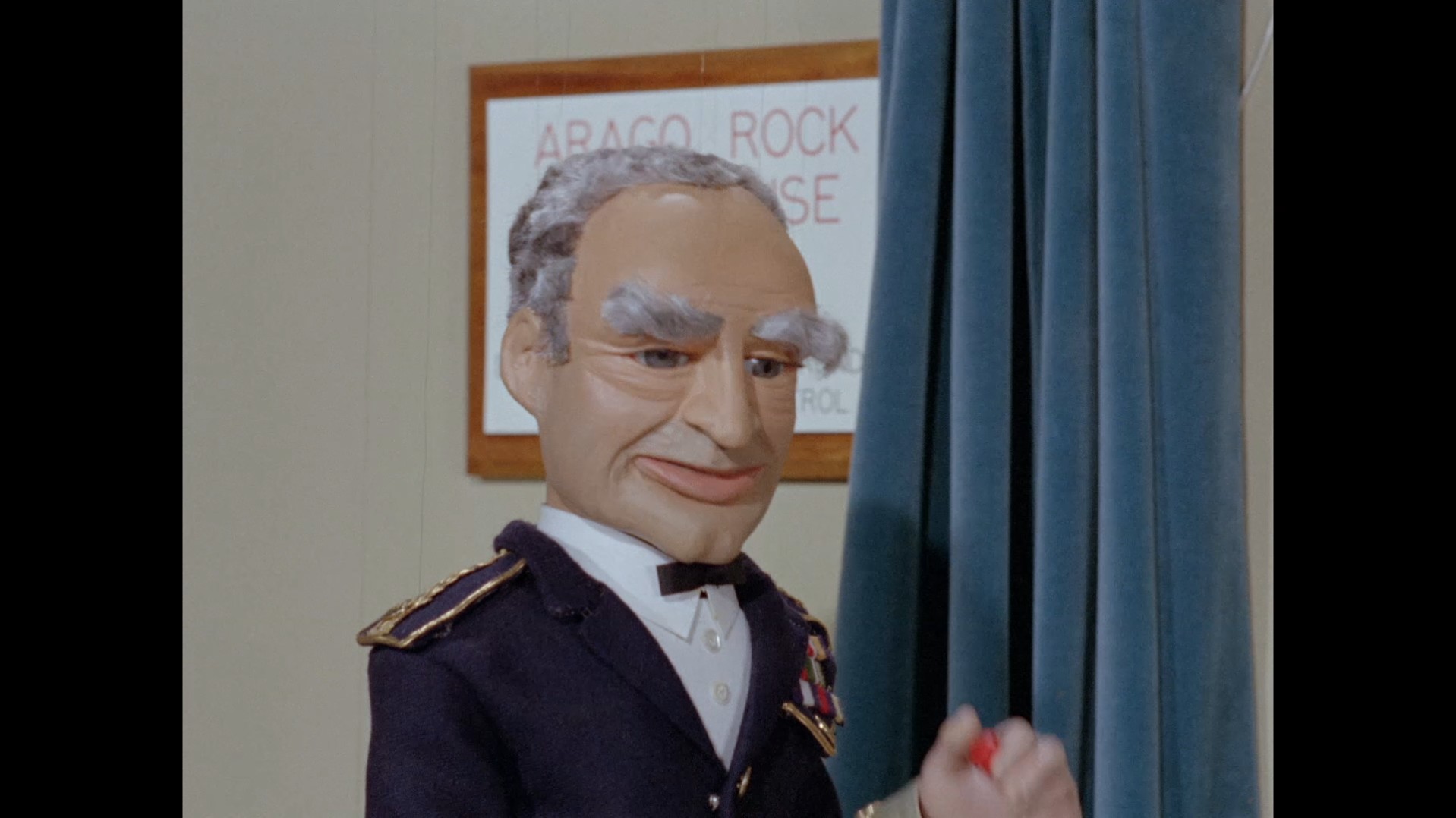 Conversation in the conference room turns to paying tribute to Frank Lincoln for living and working at the lighthouse alone for 40 years. Atlanta is sympathetic to Frank having his livelihood taken away from him. Admiral Frendor, a puppet previously seen as Professor Graham in In Search of the Tajmanon, objects most strongly to keeping Frank happy. Charming. I’m paraphrasing but that’s basically what he says. Frendor and Phones explain for the benefit of the audience that the lighthouse has been shut off in order to prevent confusion for aircraft landing at the new Arago Point airbase constructed on the nearby coastline. Yeah you bet I’ve done my research (5 minutes of googling) on that assertion. So far I’ve not found any cases of real lighthouses being decommissioned because of nearby runways. That doesn’t mean it hasn’t happened, it just means I couldn’t find a real-life example. Airway beacons, or aerial lighthouses, were built in a similar manner to marine lighthouses during the 1920s and 30s but have since been shut down in favour of more useful navigational aids like radio signals. Now, I’m no pilot, but I would have thought quite a considerable amount of training would go into recognising runway lights, and even in poor weather the pilot would still have other navigational aids to fall back on like. So though it’s not impossible, it seems unlikely the Arago Rock Lighthouse would have caused all that much confusion to approaching aircraft. I think it’s far more likely that Frank’s lighthouse would have simply been automated like all the others. Or if the lighthouse had been decommissioned completely, there’s no reason Frank couldn’t have carried on living there – provided he didn’t mind living under a flight path. Anyway, instead Frank’s going to get a medal and a party and I’m sure he won’t be bitter about that at all.