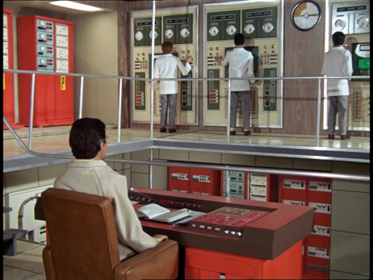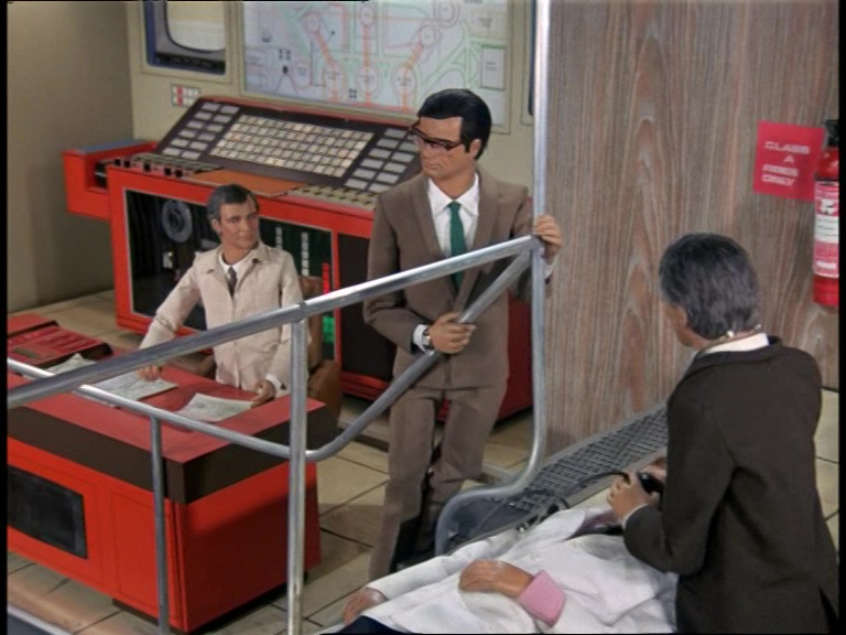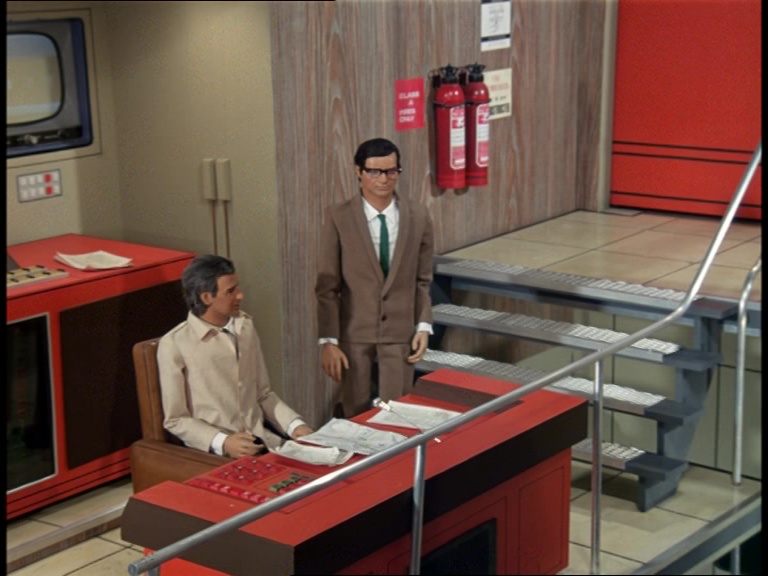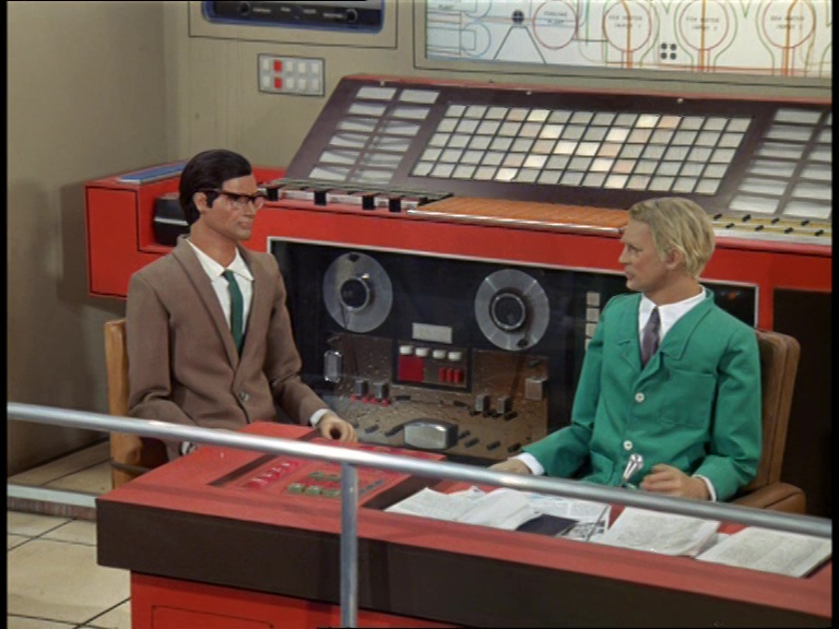 Gotta love a split-level Supermarionation set. Maybe the art directors were getting more ambitious, maybe the ceilings in the new studio buildings were taller, or maybe they did away with building the sets on raised platforms, but there are some tall-as-heck control room sets seen across Captain Scarlet, Joe 90, and The Secret Service that look amazing. The technical gubbins all look mighty impressive but, rather cleverly, everything just about fits in with the look and feel of contemporary late-60s technology. It probably helped that late-60s technology was starting to look pretty slick what with the computing developments being made by NASA to put a man on the Moon.