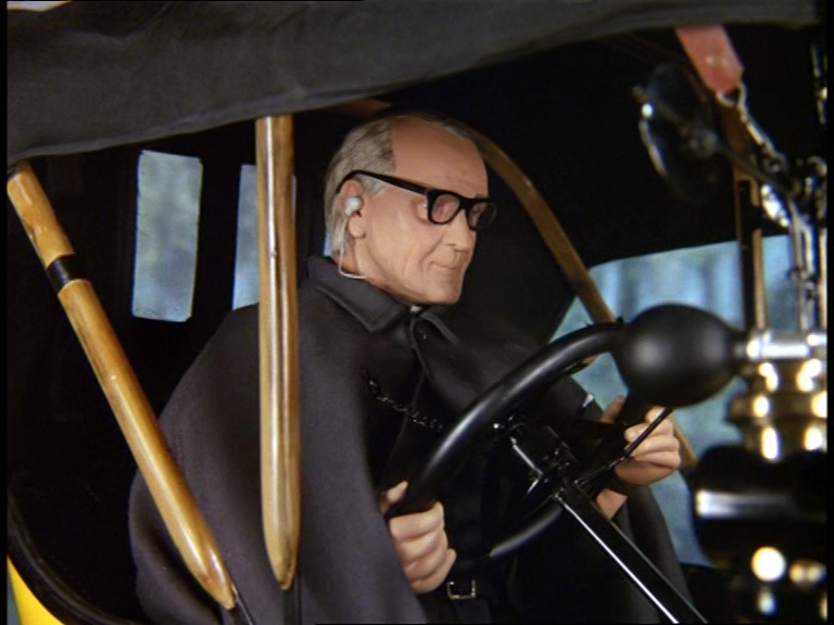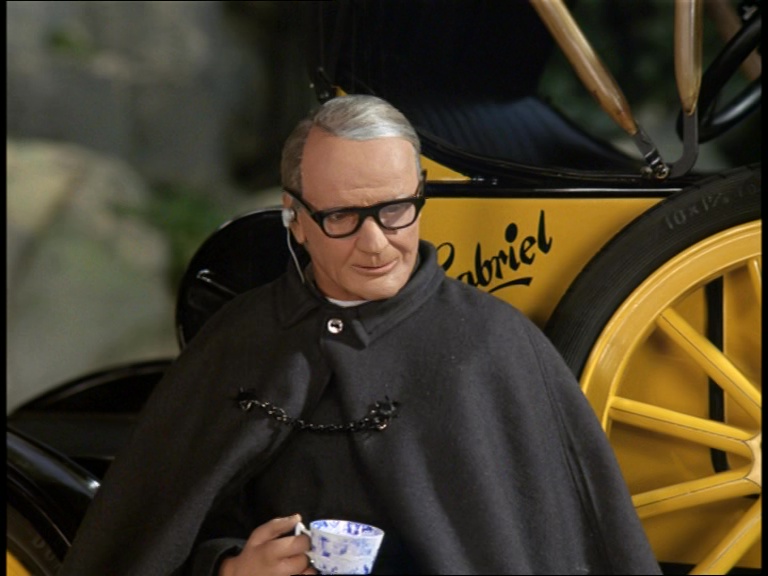 As the roof of Gabriel is up, this puppet of Father Unwin is controlled from underneath. The script indicates that Father Unwin is so gripped by his radio conversation that he’s not doing a very good job of staying on the road. This minor comedy moment is absent from the finished episode, and I’m going to be needlessly catty and say it’s because Stanley Unwin actually sounds bored stiff by the conversation he’s having. A Case For The Bishop was slightly geared towards Unwin’s larger-than-life persona, while A Question of Miracles doesn’t give the comic actor much to work with in amongst the technical dialogue and corporate espionage. The result is a Stanley Unwin who doesn’t exactly sparkle much during this particular episode outside of a few quirkier moments.