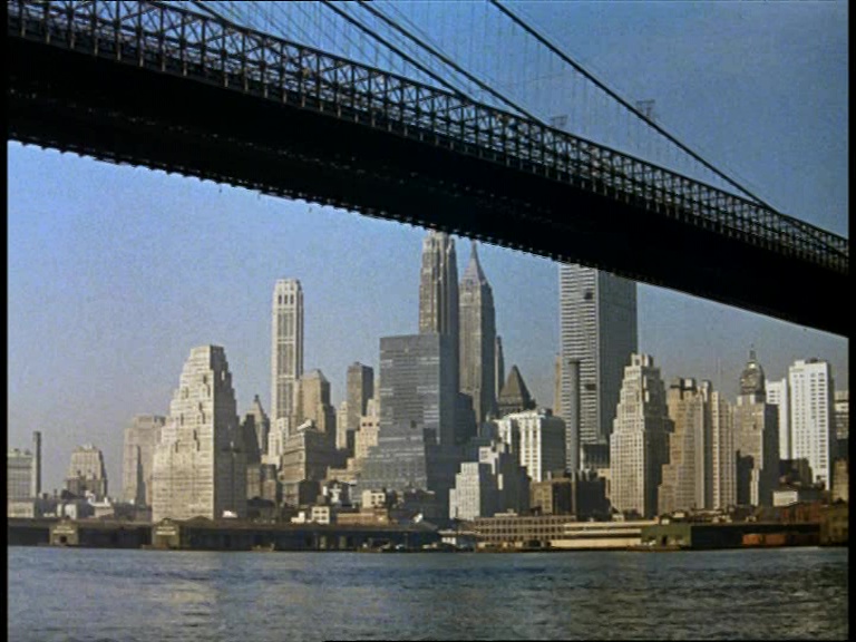 The Big Apple. Yes, The Secret Service is taking a rare and brief trip to the land of the free just in case any American broadcasters bothered to take an interest in the series. Although taken from a different angle, Thunderbirds fans may recognise this particular section of the New York skyline from The Duchess Assignment. It’s stock footage filmed from under the Brooklyn Bridge facing the southern tip of Manhattan Island.