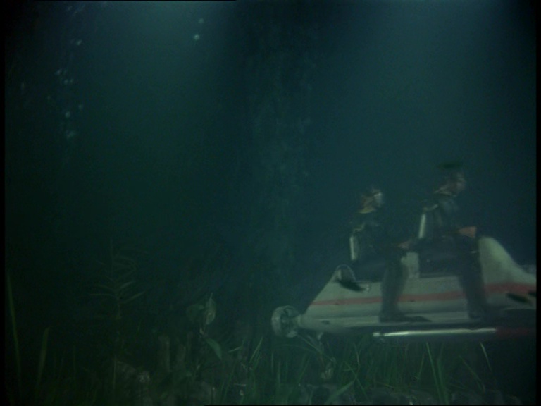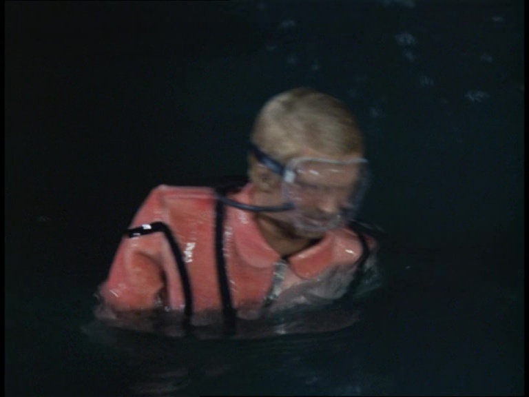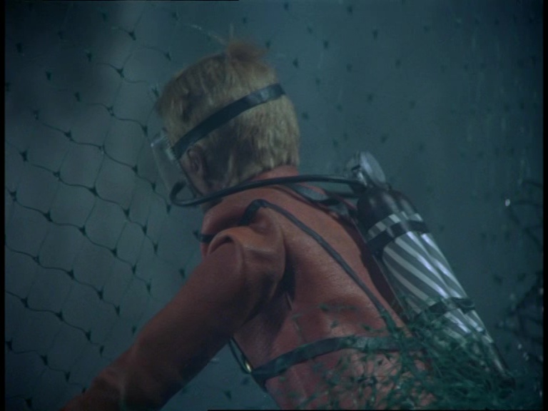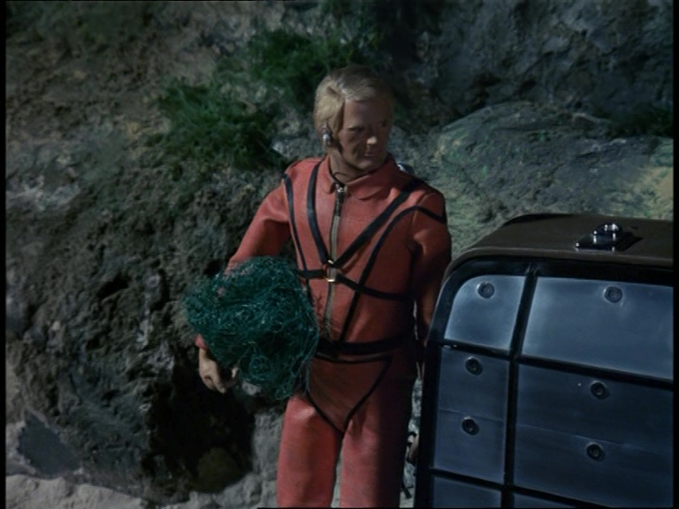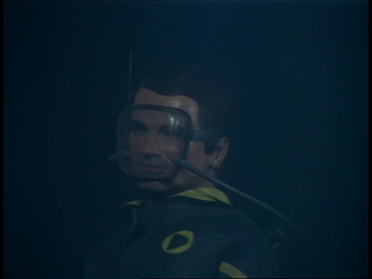 Matthew dives down and because these are the people who made Stingray, the underwater sequences for this episode look great. In fact, they’re an improvement on Stingray in the sense that an effort has been made to lower the lights and make the deep water as dark and murky as it really would be. It’s not the case for every shot, but it’s very effective when it does work. Combined with Barry Gray’s tense soundtrack and what you have here is a really eerie and foreboding sequence as Matthew swims out to sea in a vast ocean where even the plant life is bigger than he is.