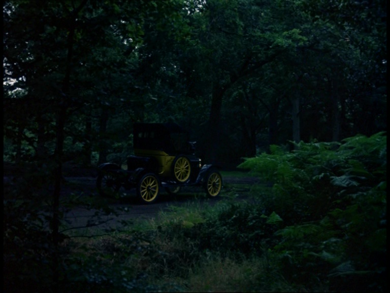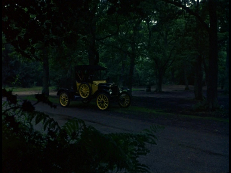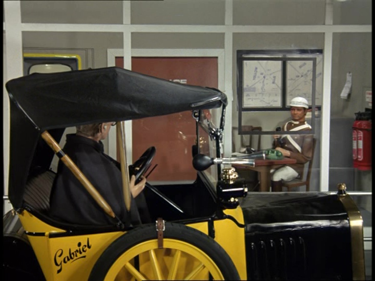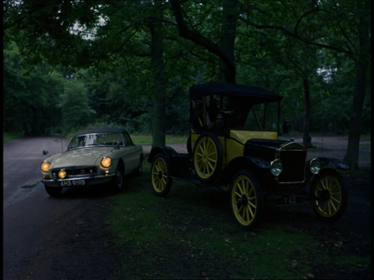 Gabriel is back out on location with its roof up for the first time in the series. Shooting for this episode began on August 29th 1968 so we’re in the final days of an idyllic British summer in the countryside. Specifically we’re in Burnham Beeches, a frequently-used location for the series located between Slough and Beaconsfield.