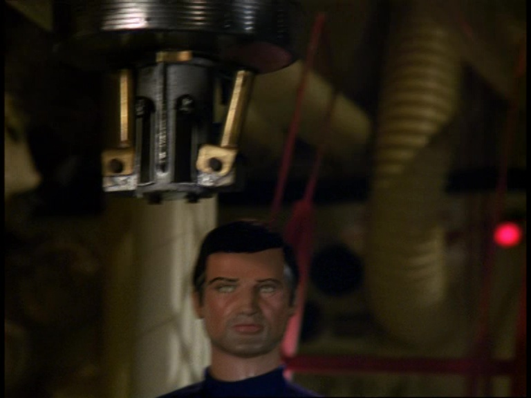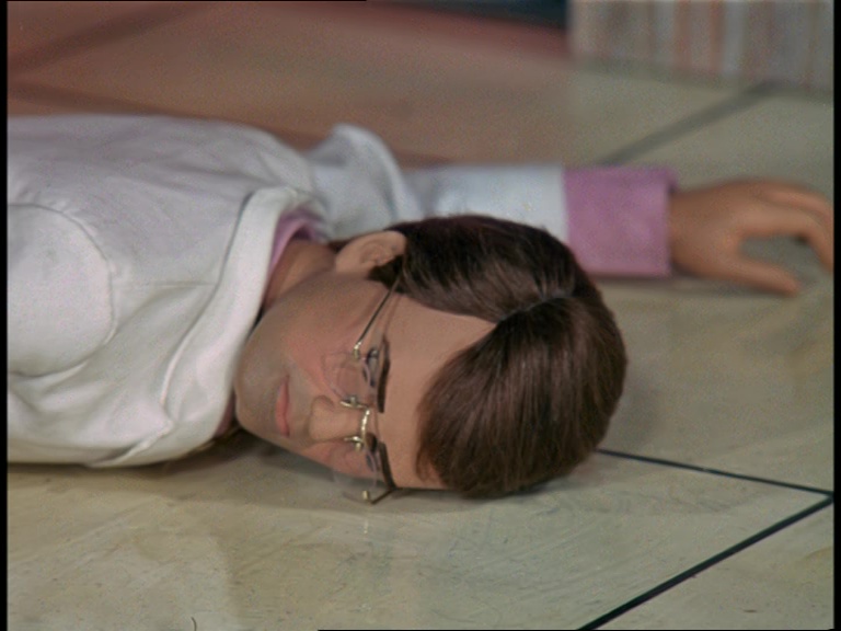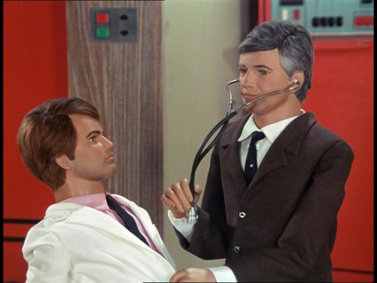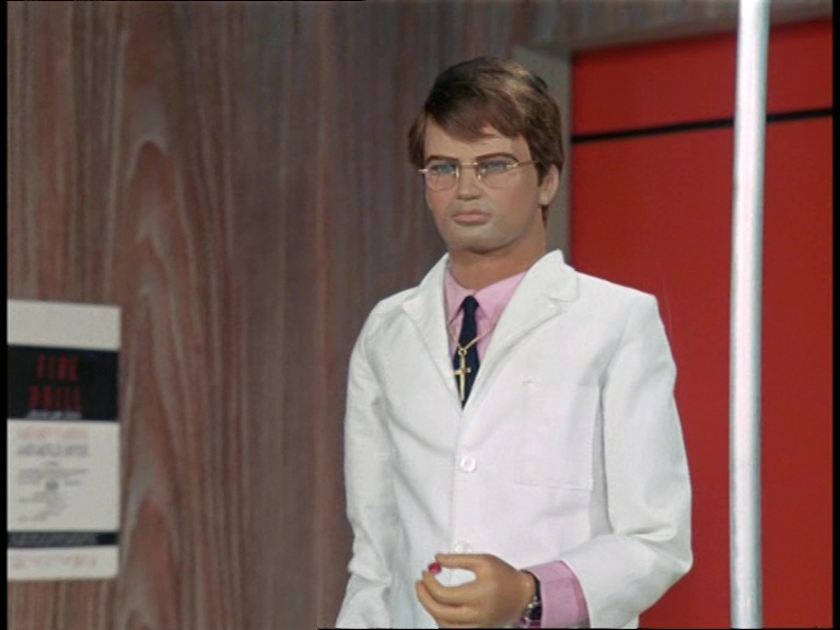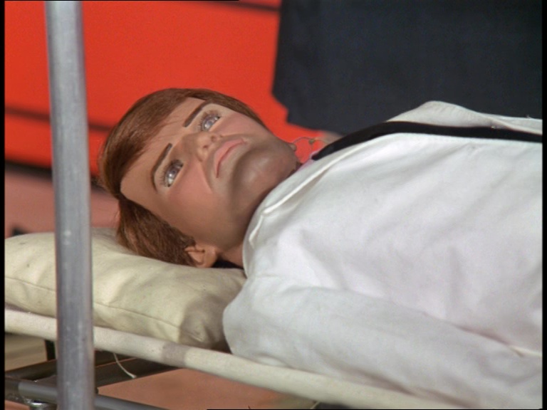Well, one answer might be that Blake wasn’t originally billed in the script as a returning character for the series and it may have only been planned for him to appear once in A Question of Miracles. The script for Blake’s next appearance in Last Train to Bufflers Halt actually assigned his lines to an entirely new character initially – an agent named Carstairs. In The Cure, Blake is named in the script but still kept on the “new” guest cast list rather than a series regular. So, perhaps it appeared to be such a small role that the puppet team assumed no-one would notice who was under the wig. Themeatically speaking, it’s also quite apt for the puppet of the indestructible Captain Scarlet to appear as a character who dies and comes back to life at the end of this episode. There are also practical considerations which we’ll come to later on. Ultimately though, the Century 21 team were probably just having a bit of fun and didn’t expect anyone to read much into the unusual casting choice.