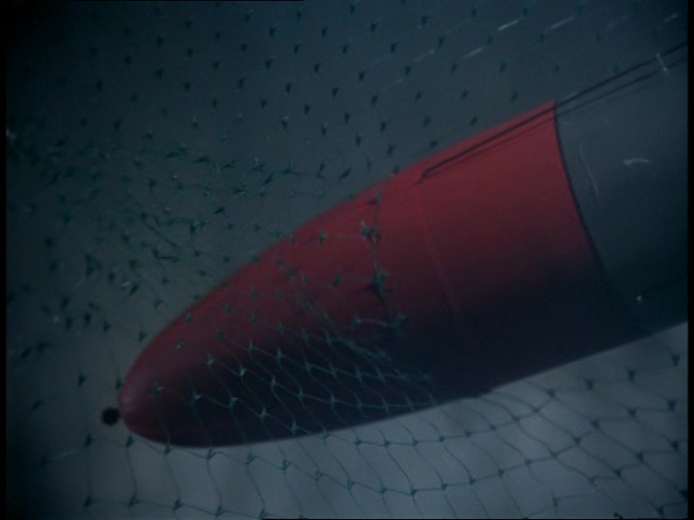Well, almost securely. The main distinguishing feature of an inlet pipe is its ability to let stuff in. So despite Matthew’s illusive net of destiny, the torpedo is still getting sucked off by the mouth of the pipe…