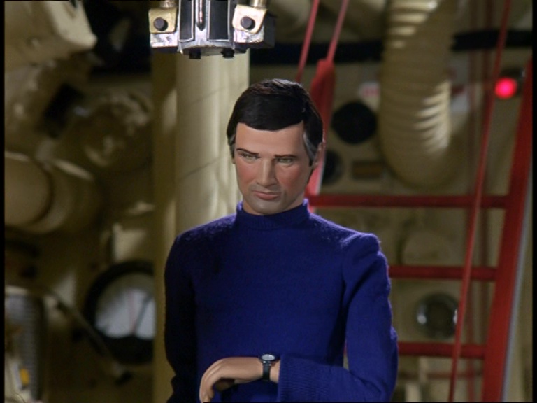The next scene re-uses footage of the submarine from the Joe 90 episode, Business Holiday. There’s even a note in the script for any readers to refer to producer Dave Lane for details. With Hartley signalling the sub, it’s basically confirmed that he is somehow involved in the whole sabotage plot… just in case you hadn’t worked that one out yet.