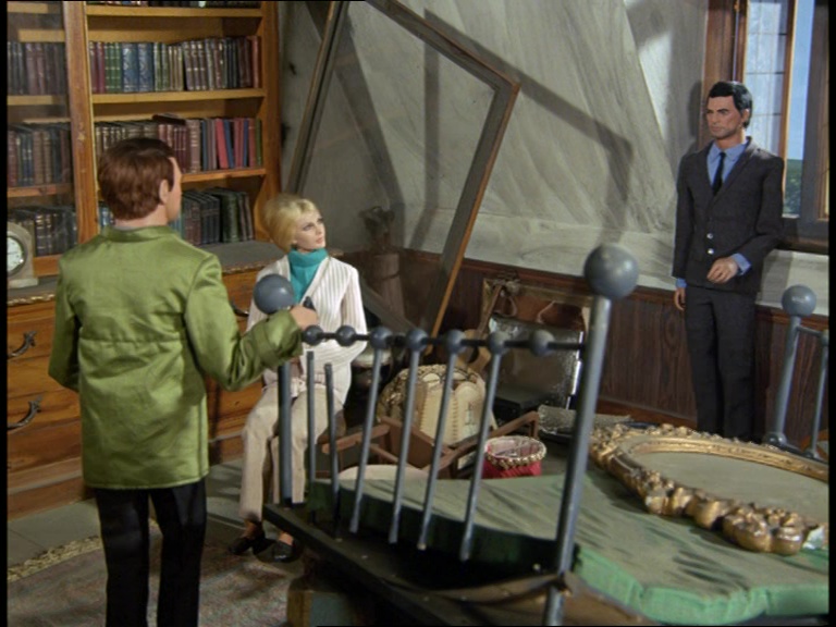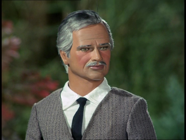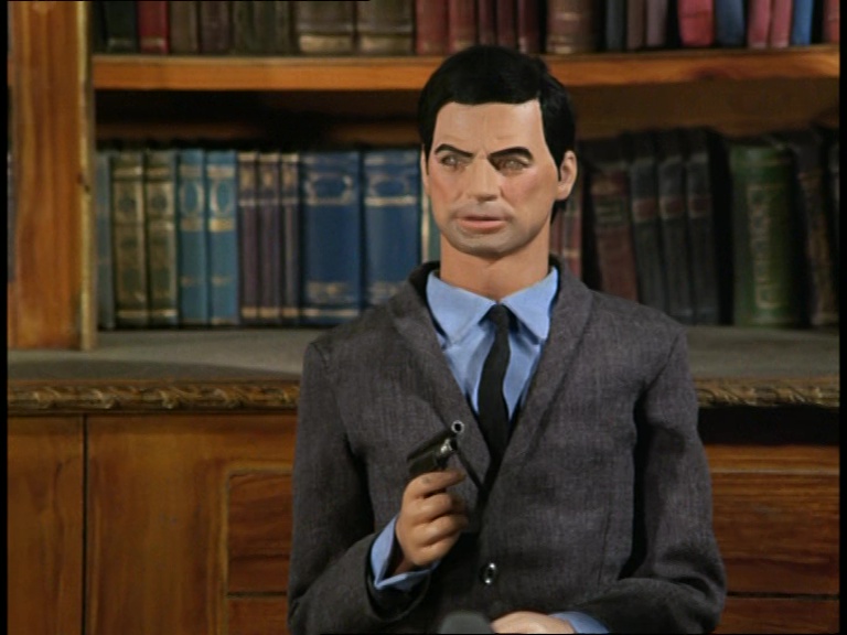 Mark Slater meets up for a nice chat with his totally not-evil-looking buddy, Kroner. It’s a Mysteron reunion party between Captain Indigo and Captain Black. Frankly, Black’s rather distinctive face makes him quite unsuitable for his various guest roles in Joe 90 and The Secret Service, but I guess if ya look like a baddie you’re gonna get cast as a baddie.