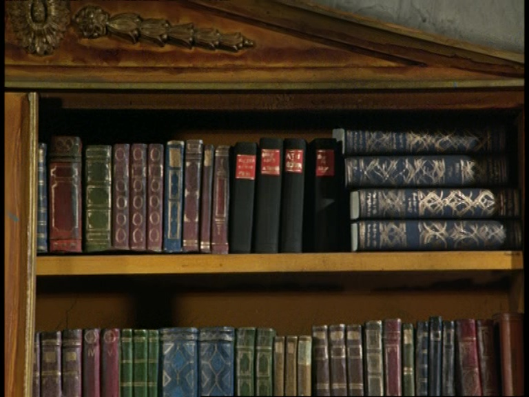 Inexplicably, despite not being in the case when Father Unwin carried it upstairs, Matthew has found himself in the room with them. He’s also managed to sneak in, crawl up the bookcase which is the size of a skyscraper from his diminished perspective, and silently find some space behind the books without attracting Kroner’s attention. Sounds a bit far-fetched to me.