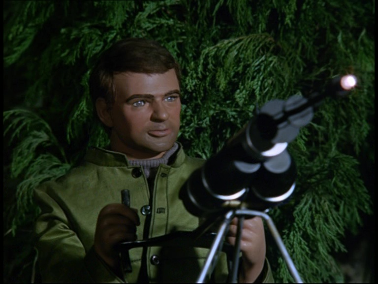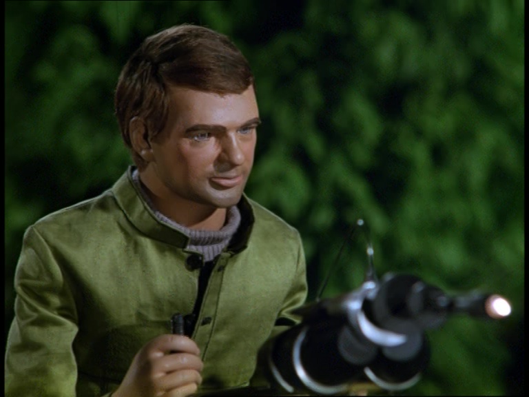 The interior of the control room was also seen in Errand of Mercy, and The Feathered Spies before that. I guess olive green was just the colour of choice for airbase architects of the late 60s. Captain Ochre takes on yet another guest role in the series as the airfield controller. Does that puppet have some dirt on the Andersons or something? He seems to get cast in their shows a heck of a lot…
