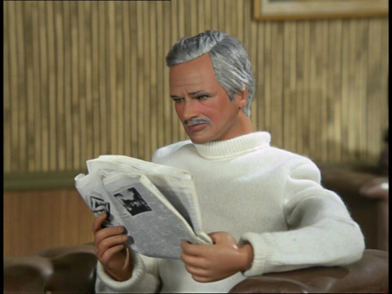 We return from the commercial break with a “nighttime” shot of Garbiel that looks more like a particularly overcast Wednesday morning in January. Matthew summarises the plot for us one more time, indicating that there could be a leak at the golf course but he doesn’t know how. Amazing work guys, glad you’re so on top of this. Interestingly, Matthew refers to Kromer’s outfit as “the opposition.” Anderson productions tended to steer away from being too specific about the origins of certain baddies that were clearly intended to be a bit Russian and Cold-War-esque.