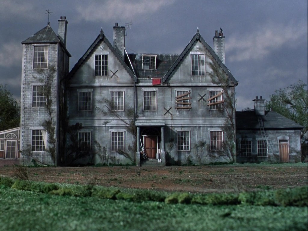 Probably because of the Tiger Moth sequences we’ll see later, the exterior of Oakley Court itself has not been used to represent the Hazelwell residence. Instead, we have this incredibly detailed model. I’d say it’s one of the most gorgeous and richly detailed sets the special effects department ever produced. From the overgrown plant life to the milk bottles on the front step to the bird perching on the chimney stack, absolute realism was clearly the aim of the game when this model was put together. The effects team may not have had much enthusiasm for The Secret Service when they started working on it, but they really stepped up and improved the quality of their work as the series went on and this is the culmination of that effort. The main part of the building likely started life as Clayton’s house from the Joe 90 episode See You Down There, but then the roof was modified, and the porch was added and the east wing and the west tower and the conservatory. It’s an example of a relatively simple model being brought to life by an artistic team who were obviously very enthused by the tone and energy of Tony Barwick’s script for this episode.