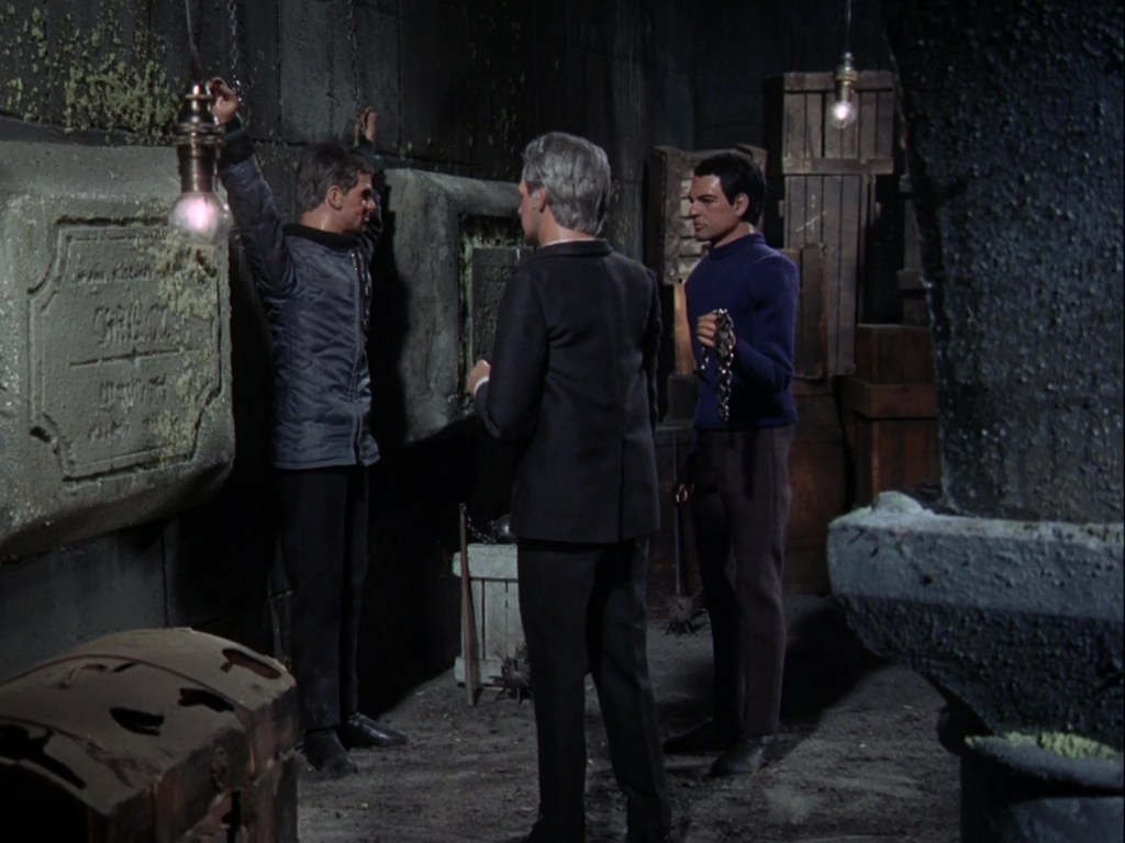 Still unable to actually act upon anything they’ve heard, Unwin plans for he and Matthew to sleep in shifts and then listen in tomorrow to Mullins’ interrogation. Spiker doesn’t actually mention that he’ll be taking Mullins to the dungeon for a spot of torture, but Unwin has managed to gain that nugget of information from nowhere – which suggests that maybe some of the conversation was cut out of the original script.