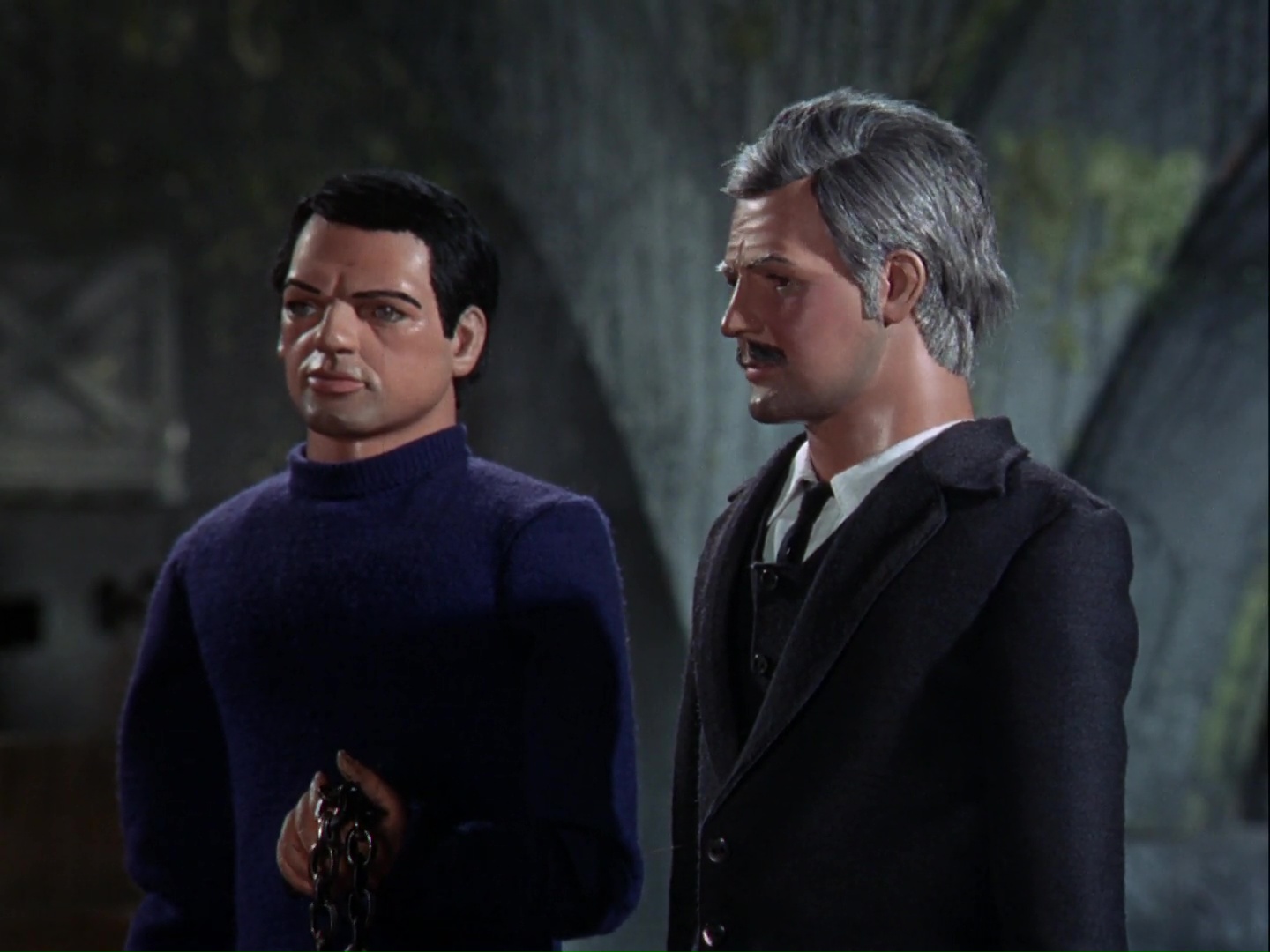 Matthew and Unwin charge down the corridor to avoid getting caught. These shots are quite clearly achieved using the under-control puppets rather than the standard marionettes suspended from above. The way Unwin’s head tilts as he rounds the corner is an incredibly nuanced bit of movement and goes to show how skilled the puppeteers had become with this relatively new method of operating for Century 21.