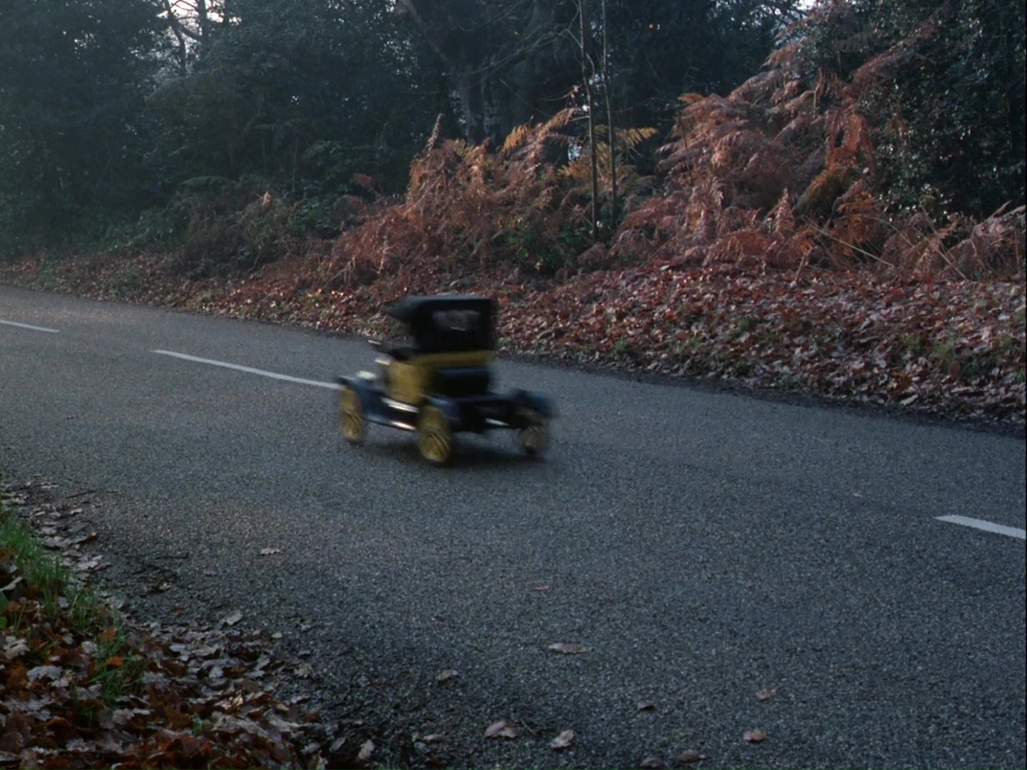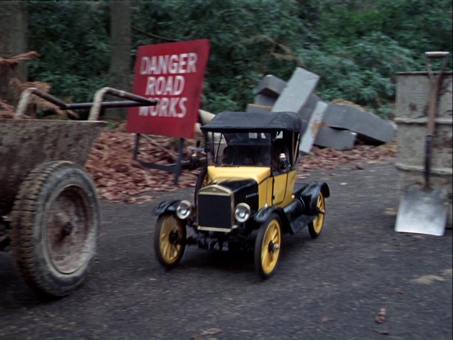 Now that Lady Martha has the lead, the chase is really hotting up. Just a reminder, the competitors in this race are a posh lady who’s never ridden a motorcycle before (and who’s being played by a man in a bad wig), a priest and his gardener in a 1917 bright yellow Model T Ford (which is actually a radio-controlled car), a yellow biplane being flown by two people who don’t know how to fly a plane (which is actually a model being filmed inside a studio), and an ambulance (which is just an ambulance).
