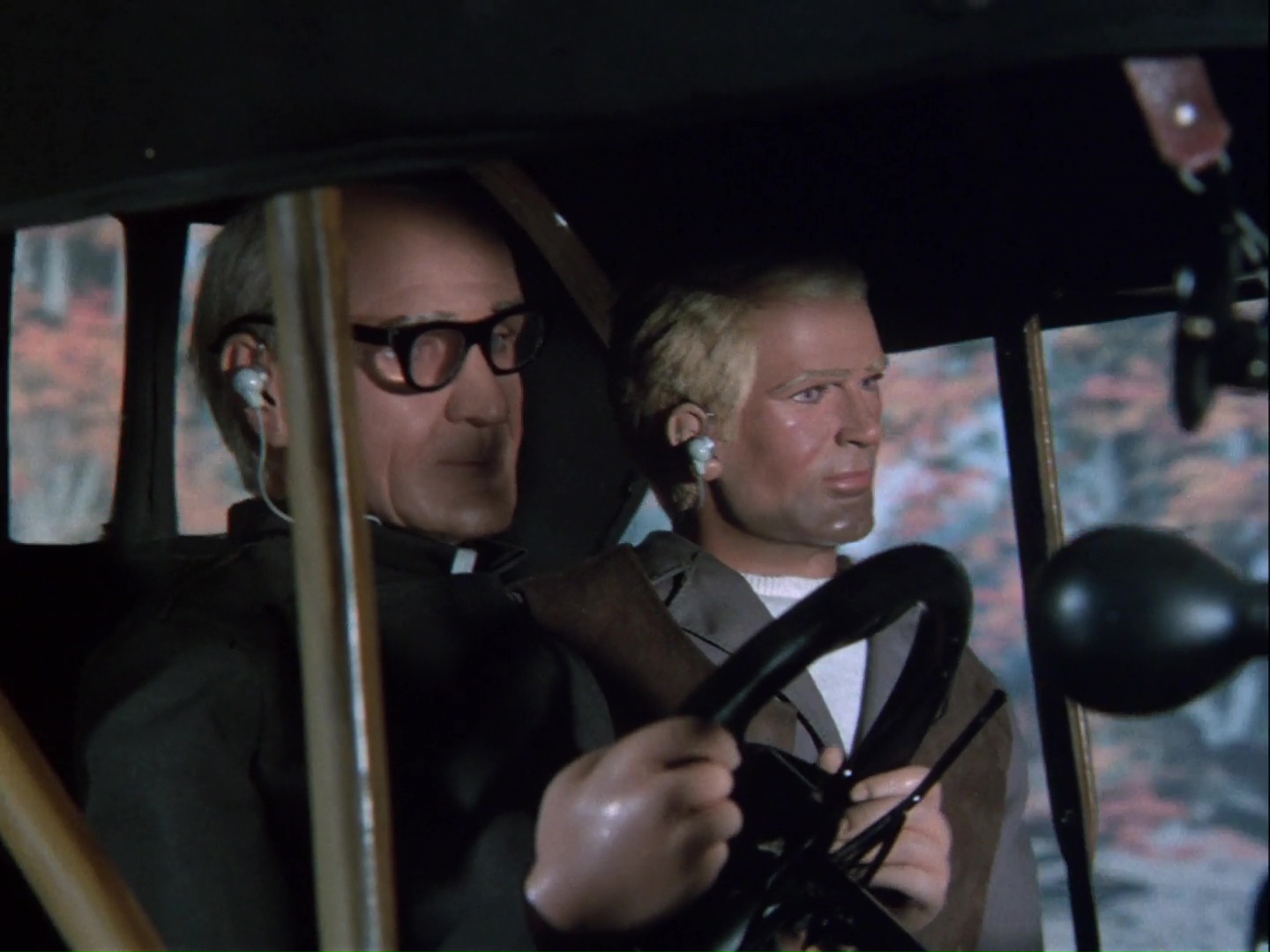 This very dramatic POV shot is used to demonstrate Lady Martha’s careless driving. Now I’d rather not assume that this is yet another 1960s dig at female drivers in an Anderson show, but it would be naive of me to rule that out. Also, just look at how dull and dismal the weather is in this shot. Filming this stuff in late-December during some of the shortest days of the year must have been atrocious for Ken Turner and the location unit.