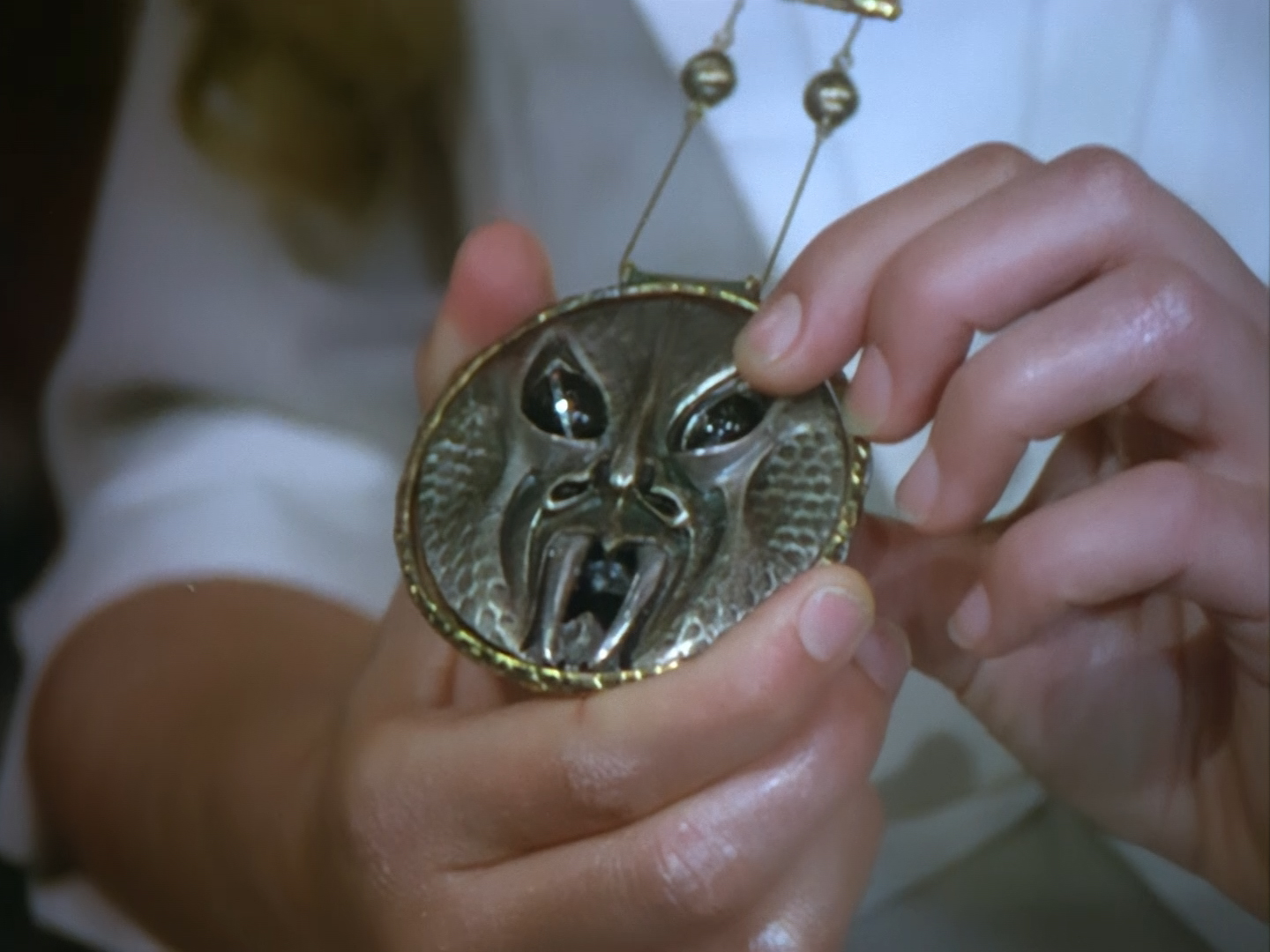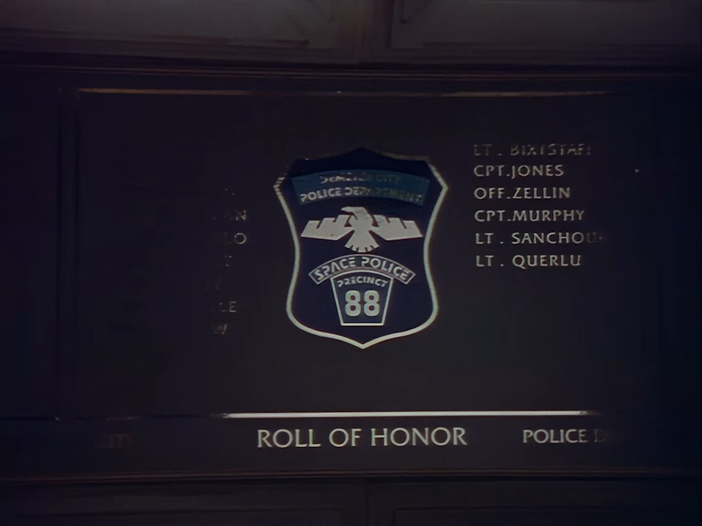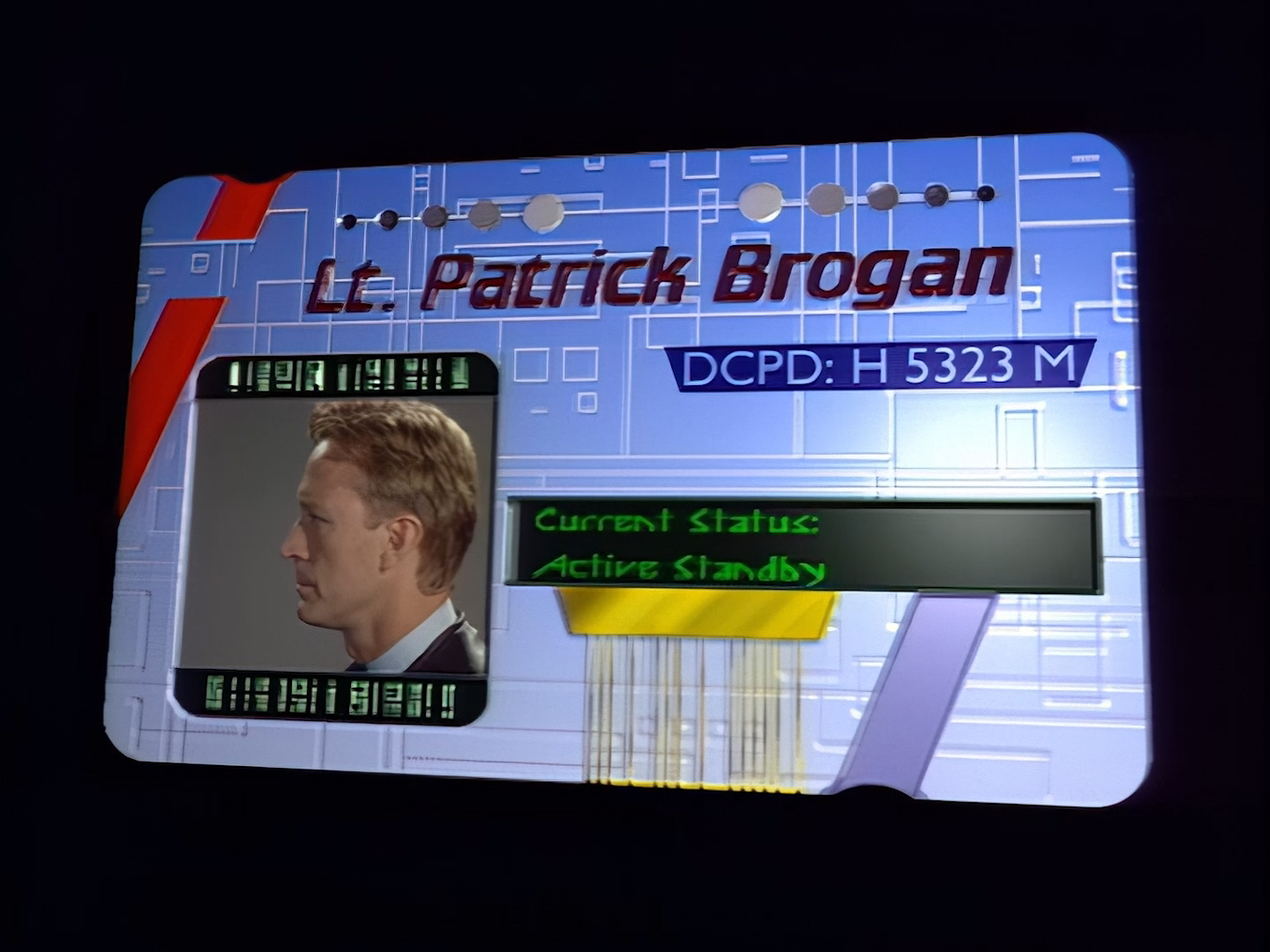 Back in the break room, Orrin and Slomo are using the best AI-upscaling technology that the near-future apparently has to offer. Of course, the “Enhance Button” trope is all too common in police procedurals, so at least Space Precinct can offer up a reasonably sci-fi explanation for it in the form of Slomo’s capabilities. And by thunder I think I recognise that hideously over-sized pendant from somewhere…