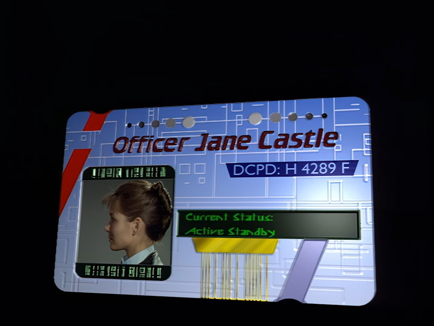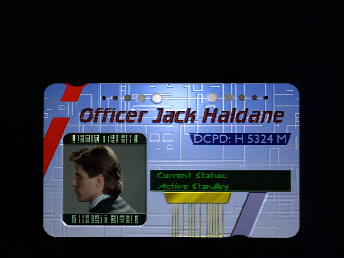 The digital I.D. cards are a neat way of introducing the key characters. Again, the HD restoration is top notch. When artificial intelligence is handed blurry text to sharpen up, it can render out complete and utter nonsense, but either the technology has been refined or some humans have intervened because everything in this shot says exactly what it’s supposed to say. The text flicks by pretty fast but to be honest it doesn’t tell us much that we couldn’t have worked out for ourselves anyway.