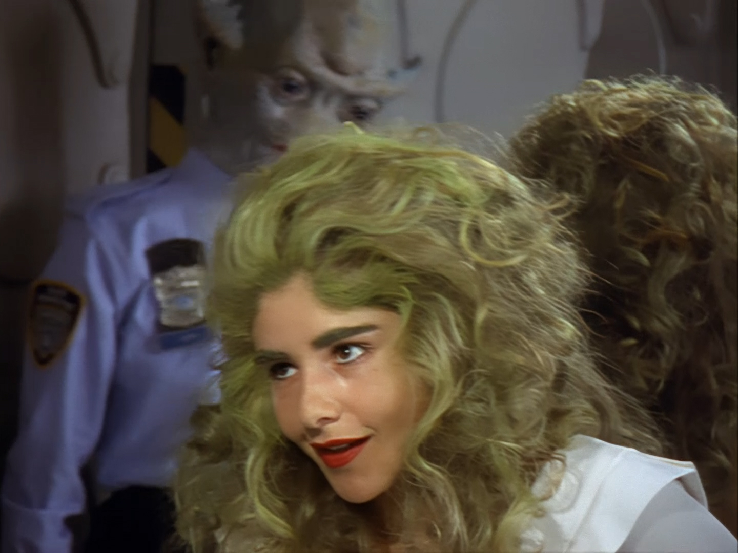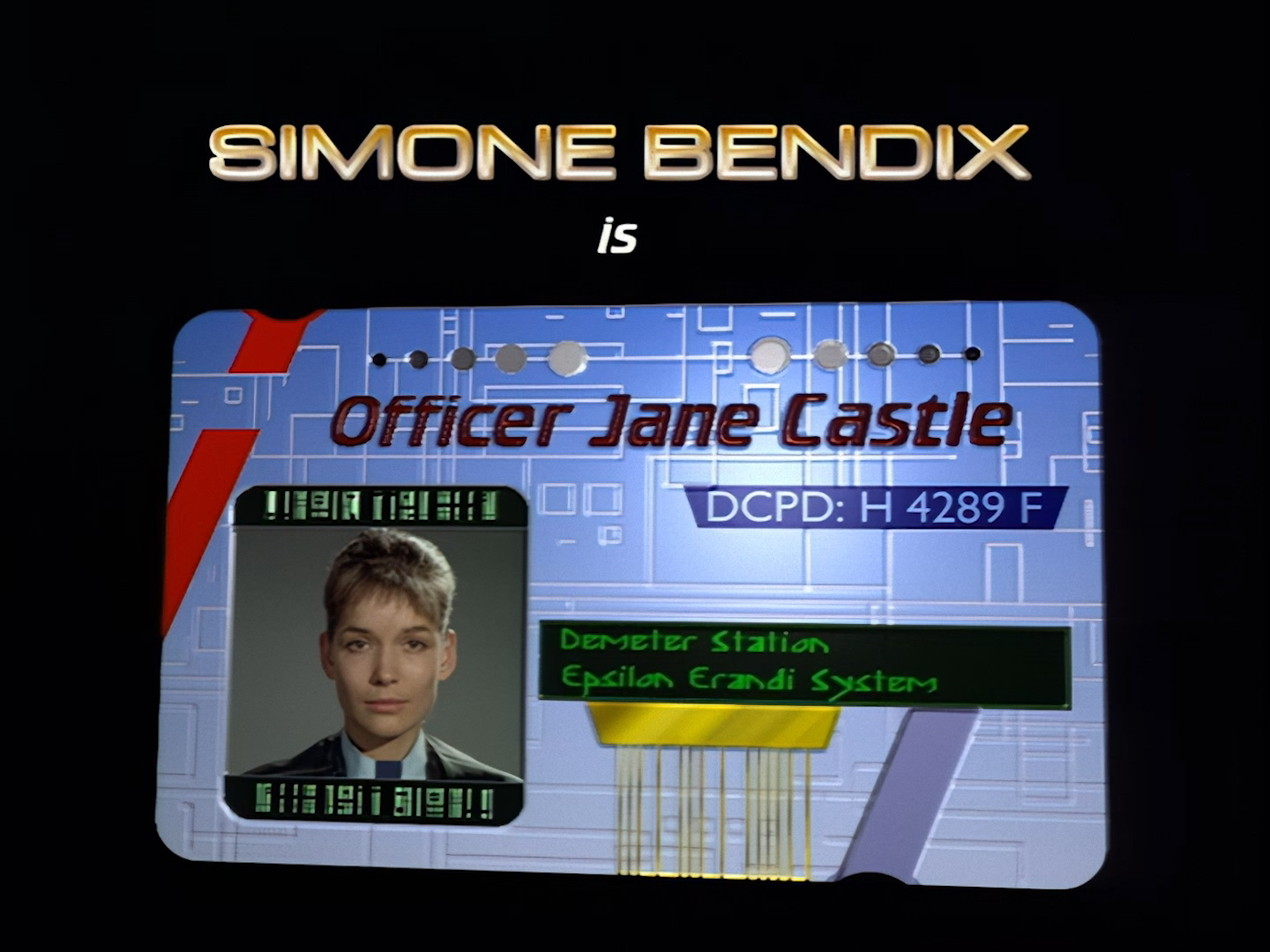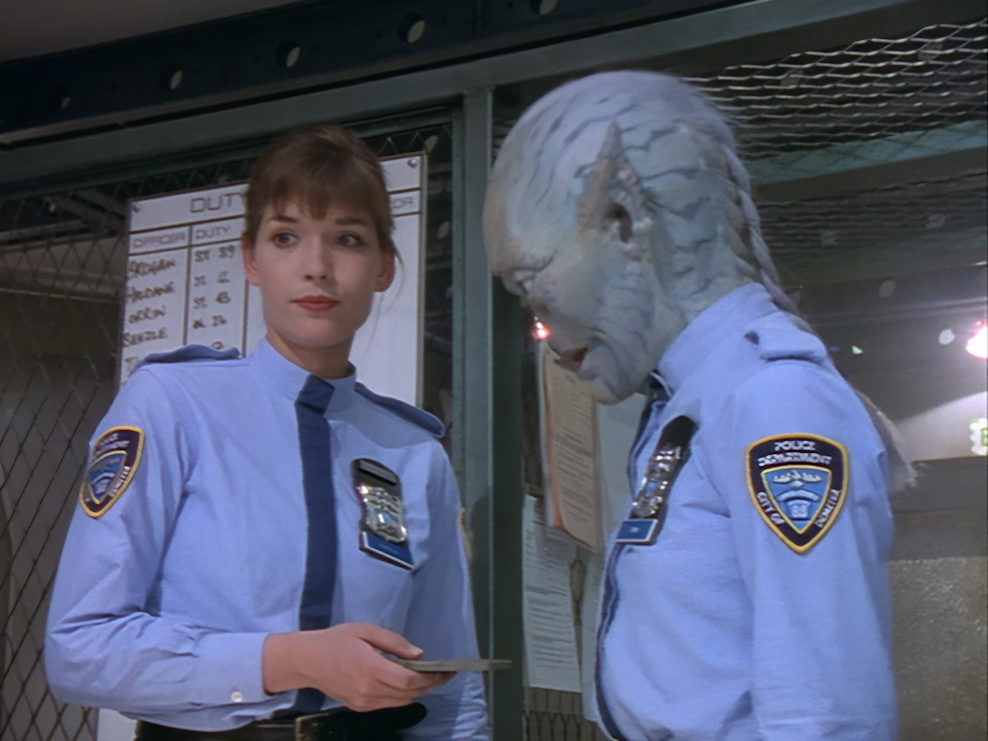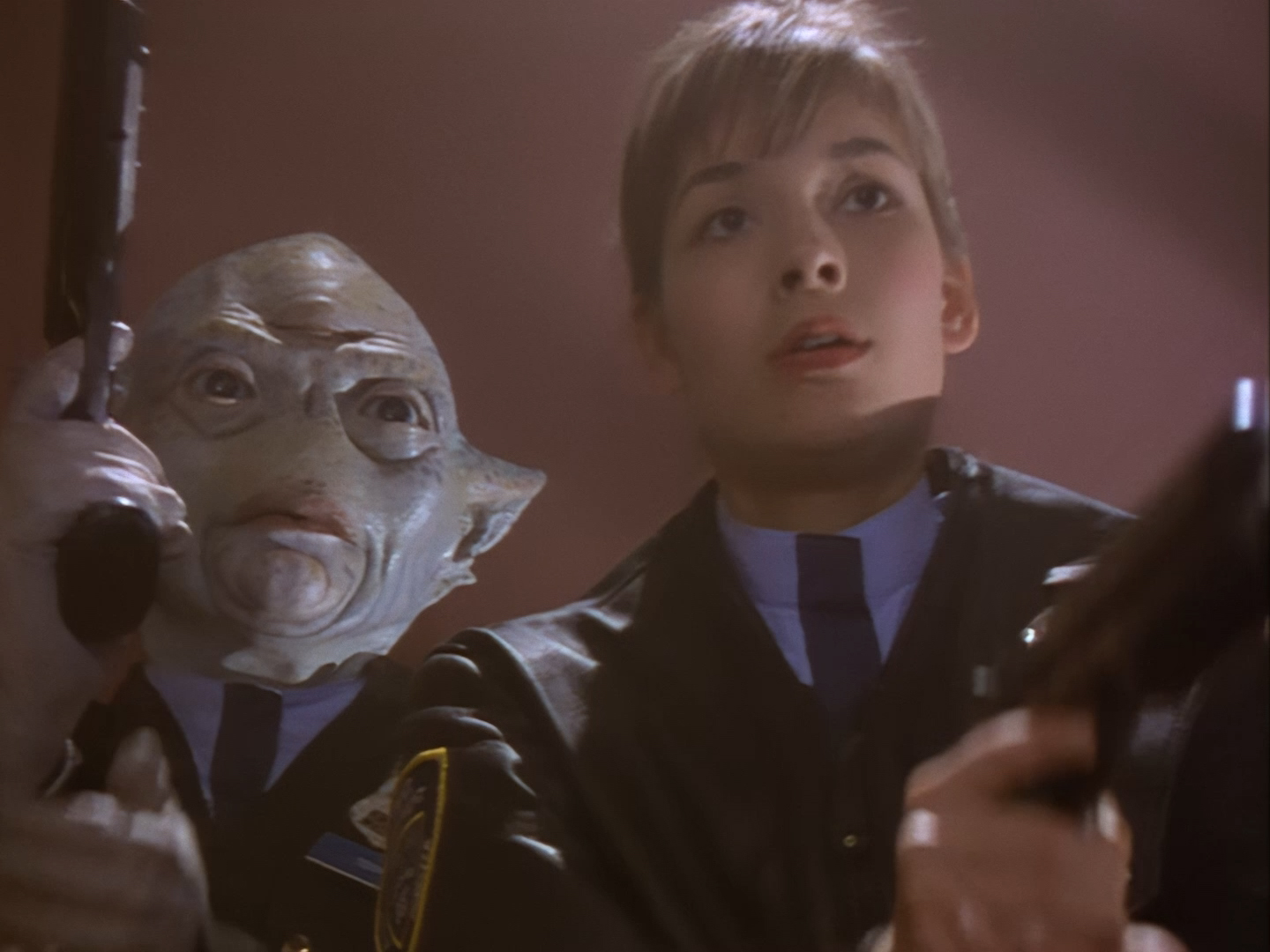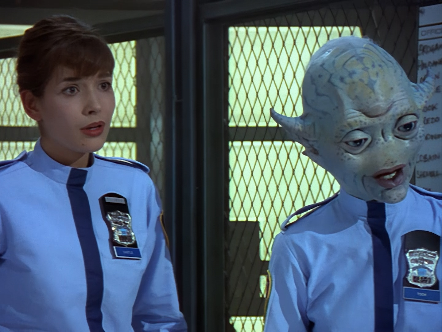 Simone Bendix is Officer Jane Castle! Again, Simone is brilliant in the role and she has great chemistry with the rest of the cast, but she was an unusual casting choice for a leading role since she had very few film and television credits to her name prior to Space Precinct. Then again, I can’t imagine the part was particularly inspiring on paper – playing the third lead who is specifically there to get sidelined every week by the two male leads who are off having bigger, more important crimefighting adventures. Fortunately, the writers did end up finding a place for Officer Castle later on, but for this week Double Duty definitely saddles her with the uninspired B-plot.