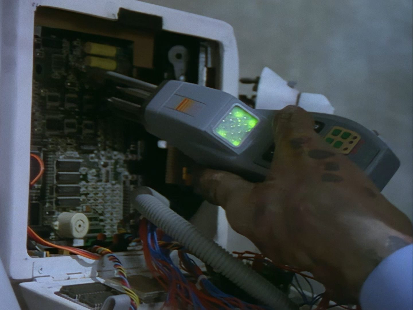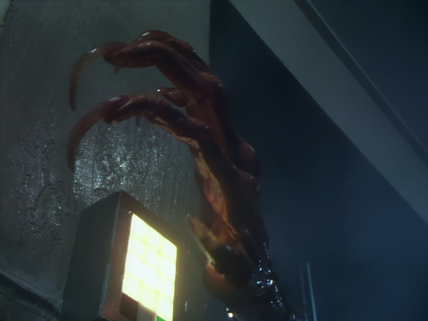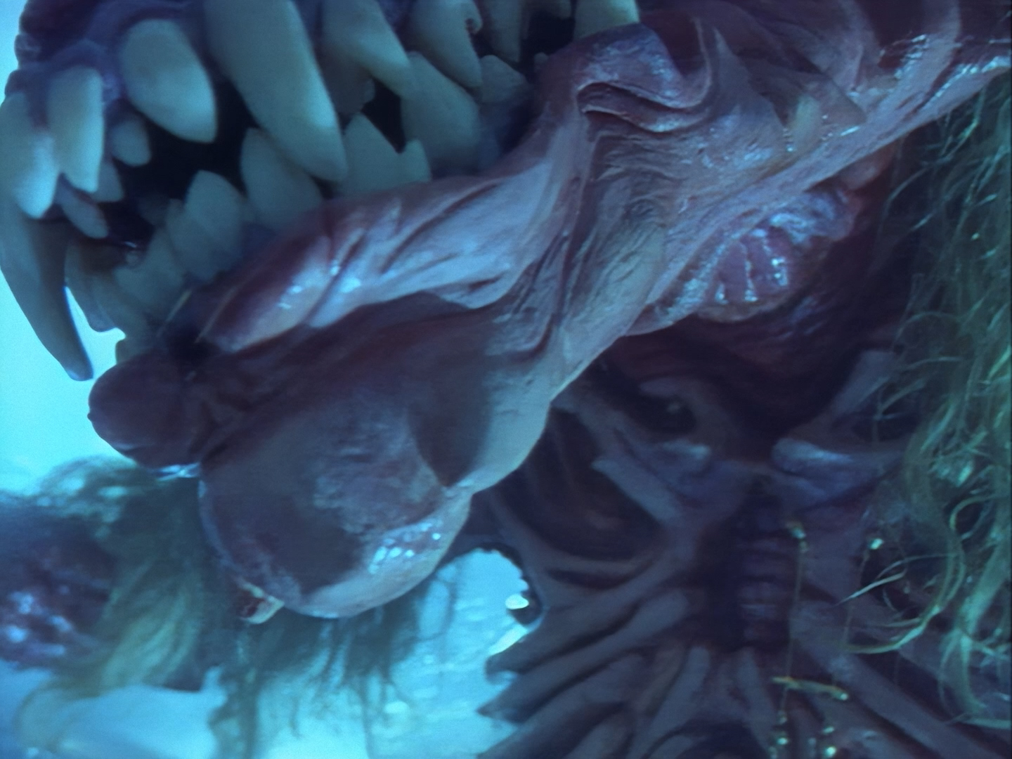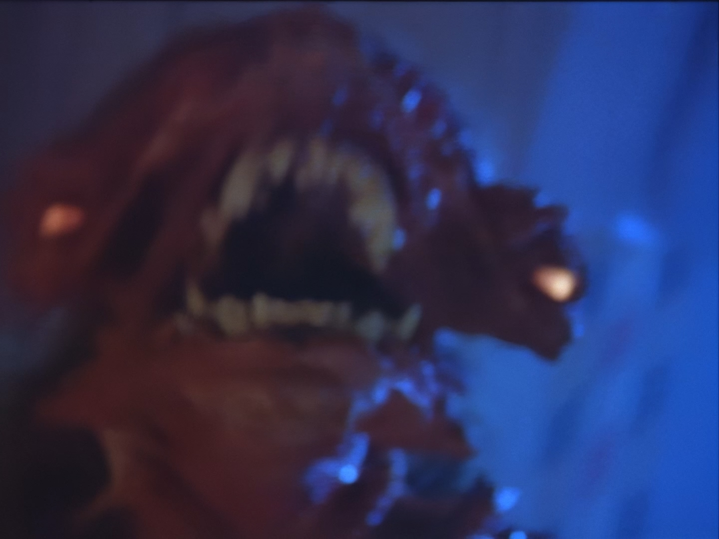 Look, it’s not the most convincing transformation in the world, but it’s not the worst either. The fact the blue screen lighting doesn’t match the backdrop is a problem, but the way the grizzly prosthetic on Aleesha’s back morphs into the grizzly head of the monster is quite effective. Obviously we all knew it was coming, but I don’t think I would have predicted exactly how the change would actually be done. That said, I’m pretty sure The Thing (1982) was a big influence on this. In fact, you’ll find that a lot of Space Precinct episodes beg, steal or borrow imagery from famous movies. (Unfortunately, I won’t always spot them because I’m woefully uneducated about movie history. I’ve essentially spent the past 30 years watching nothing but cheap and cheerful telly, so forgive me if a reference to a pinnacle piece of cinematic history passes me by.)