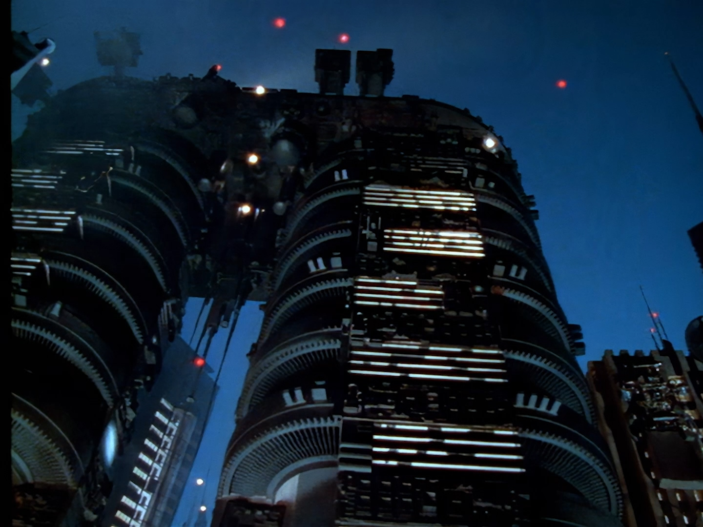 Something bloomin’ massive as it happens! Of course, the effects team could never have constructed and operated a ship that huge to dwarf the existing 3-foot tall station house model – in reality they’ve composited two shots together to make the alien ship model look massive. And to be honest it’s pretty convincing!