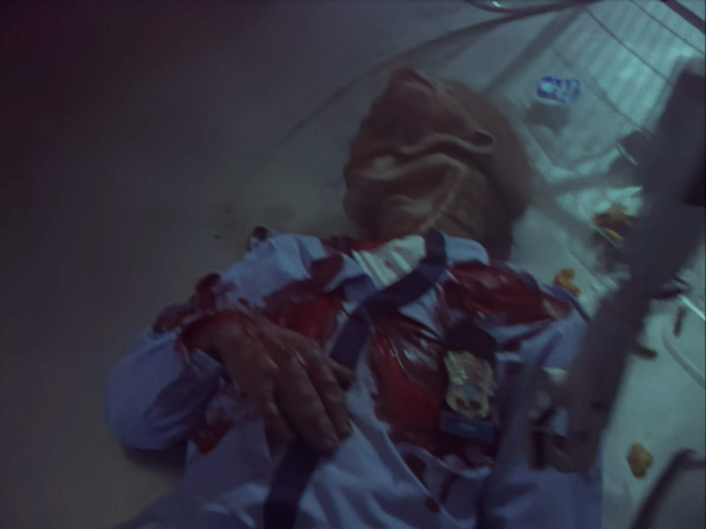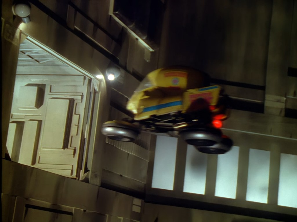 If you weren’t already aware, the BBC had a horrendous time trying to fit Space Precinct into its predetermined 6:00 pm time slot because of all the gratuitous violence on display. They ordered drastic changes be made to almost every episode to cut out or in some cases even reshoot scenes featuring violence, sadism, blood, blades, or anything nasty that a child might not want to see while sitting down to a plate of fish fingers at tea-time. Personally, I’m on the side of the BBC. I don’t know why Space Precinct‘s producers allowed grim scenes like this to be pushed as far as they were. It doesn’t enhance the overall storytelling, nor can I imagine it made the series more appealing to mature audiences. Action, tension, and scariness are entirely fitting for a family programme about space cops, but the sight of a bloodied hand reaching out for mercy is just a baffling choice. Who is that for? Who does that entertain? Almost certainly, it’s not going to delight the same people who would be amused by a comedy pizza delivery driver, or chuckle at Haldane’s tales of a date gone awry, or sit in awe at a flying police cruiser zipping through space.