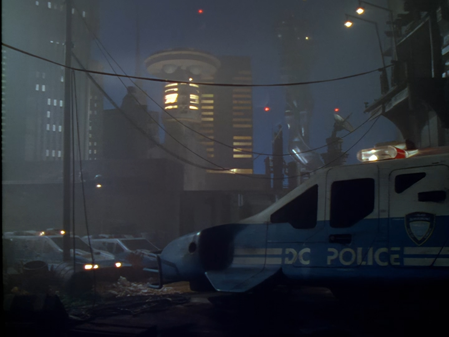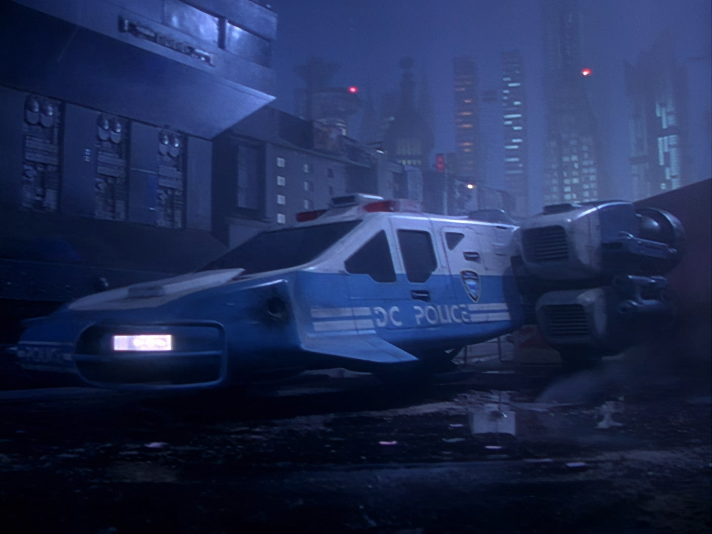 Night has fallen, and the police cruiser touches down in yet another non-descript backstreet of Demeter City.