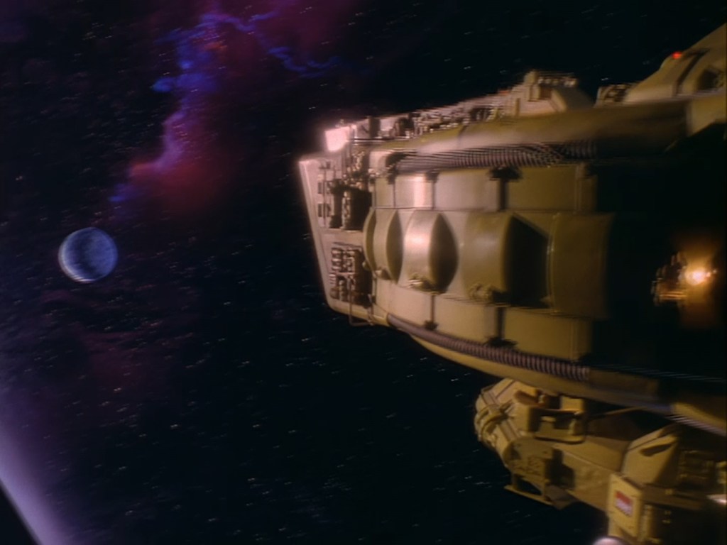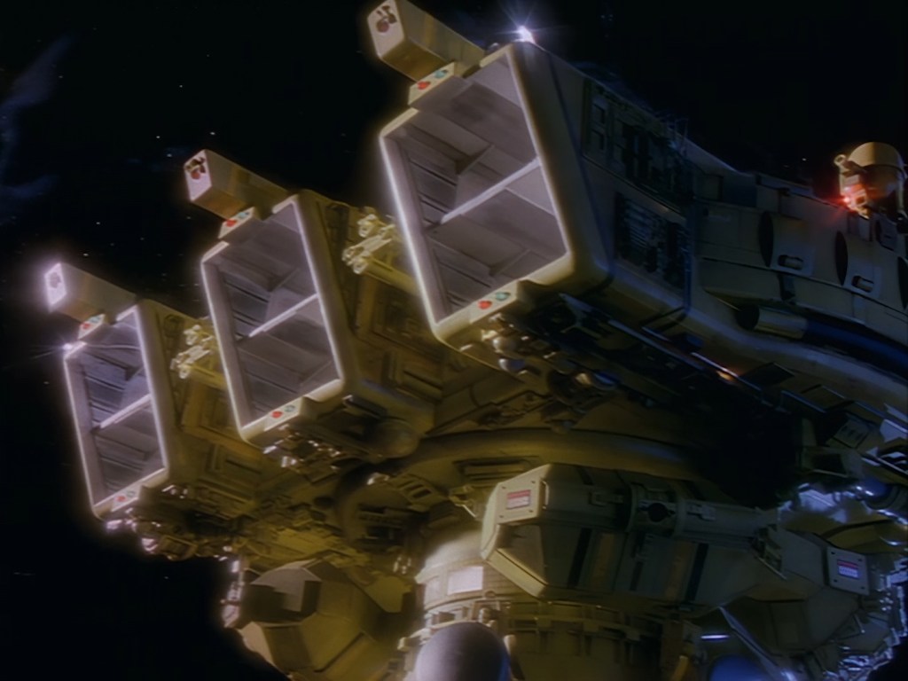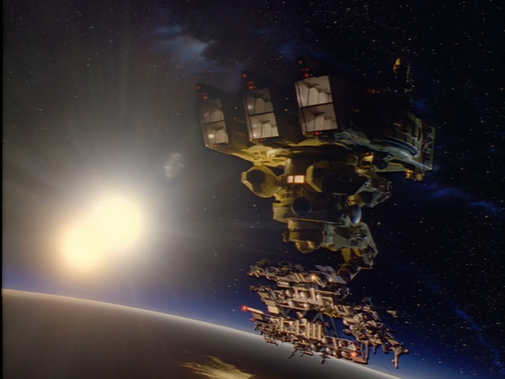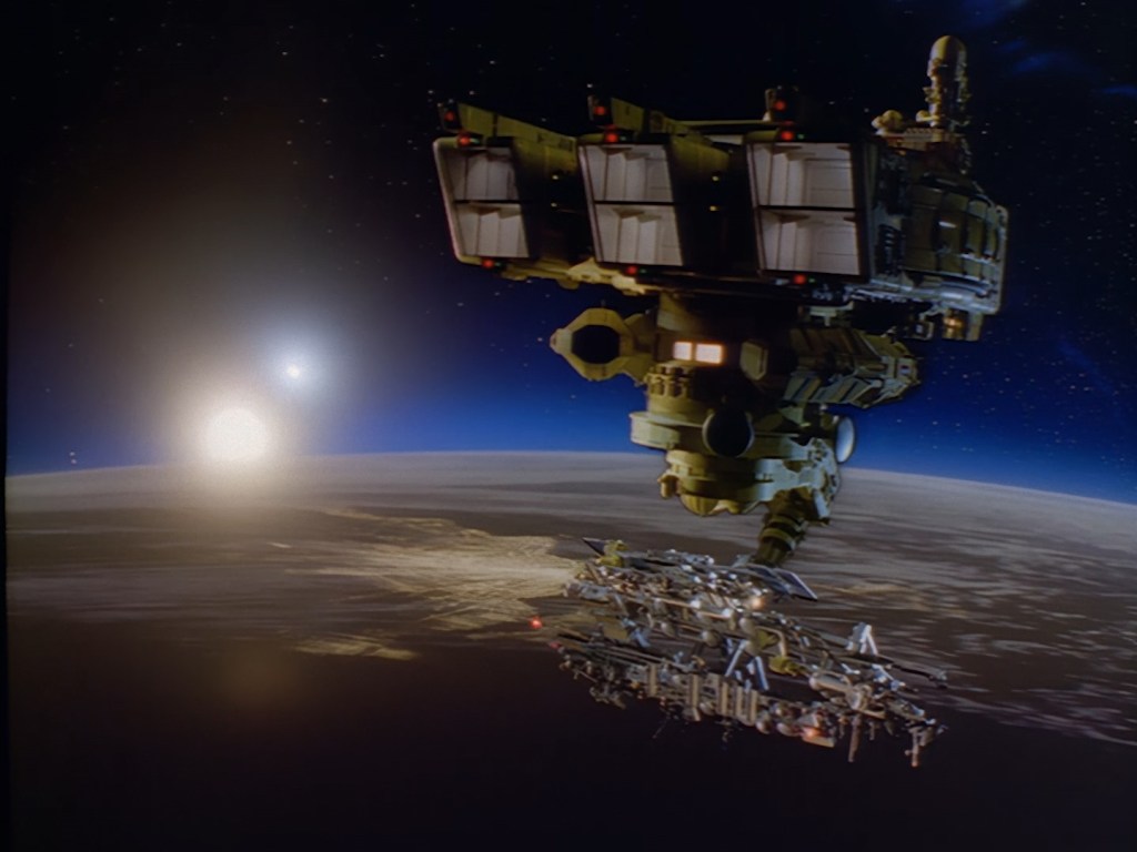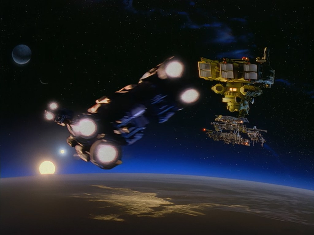 Sometimes the composition of film elements on top of other effects aren’t quite so seamless. The fiddly sticky-out bits hanging from the bottom of the space station reveal something of a black outline around the model. That’s being really nit-picky though because it’s still 98% gorgeous.