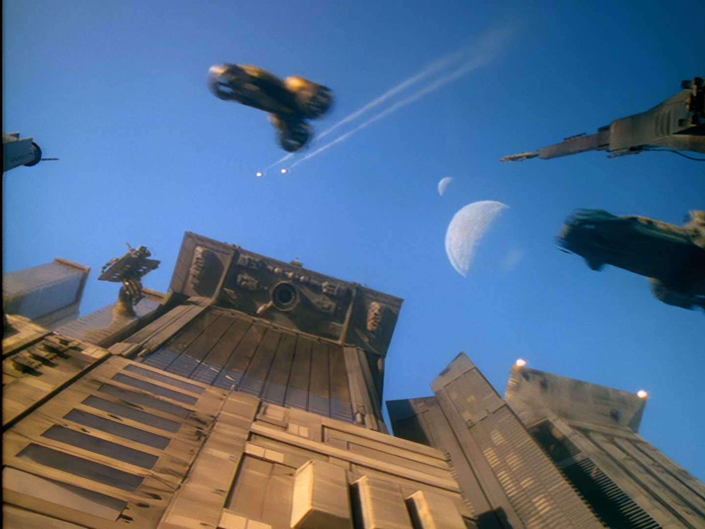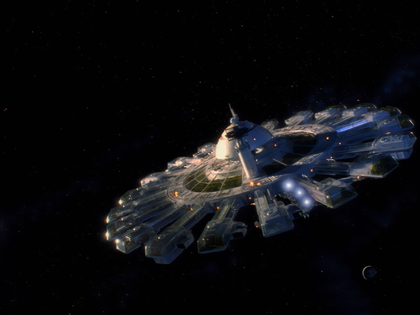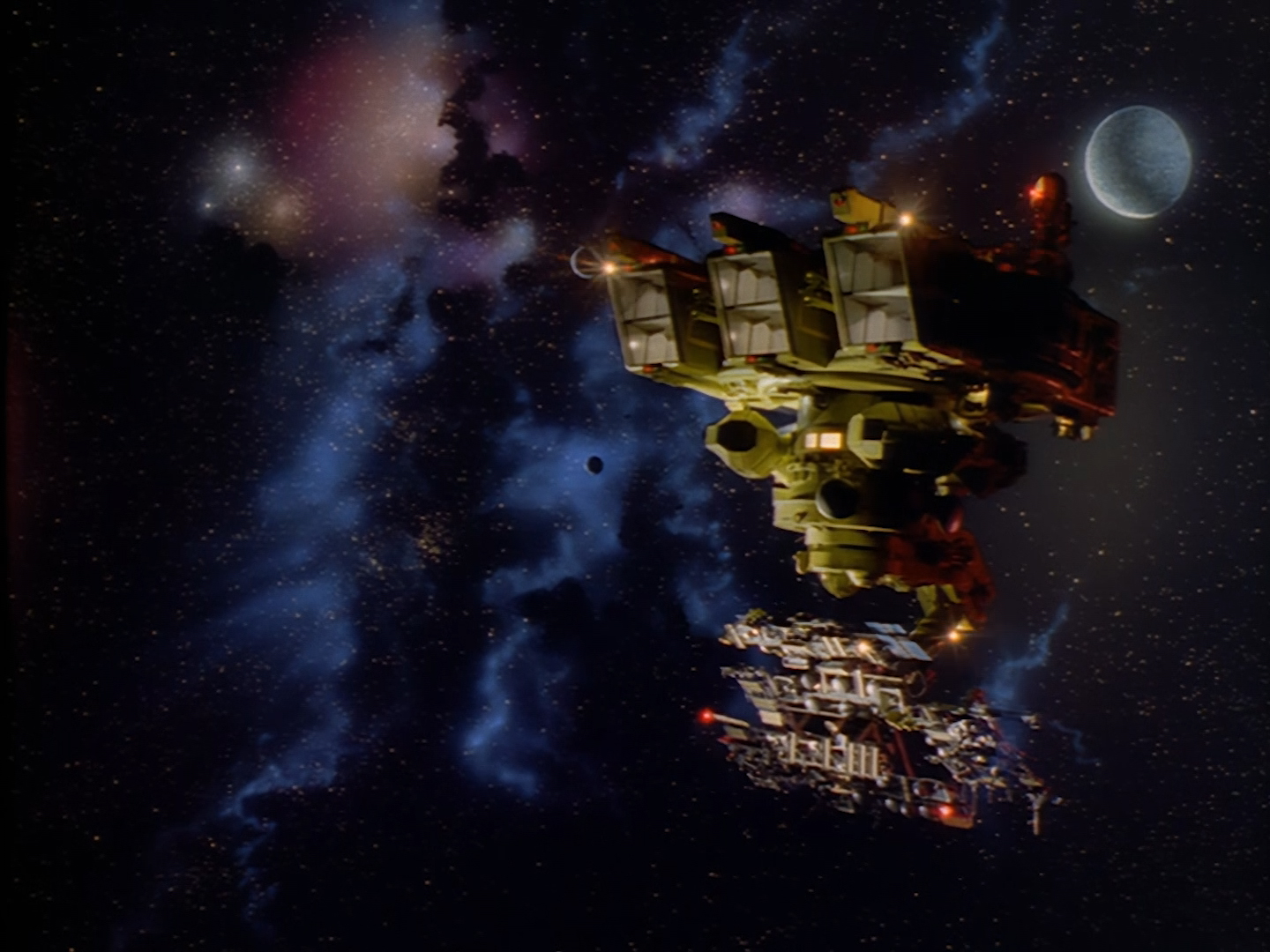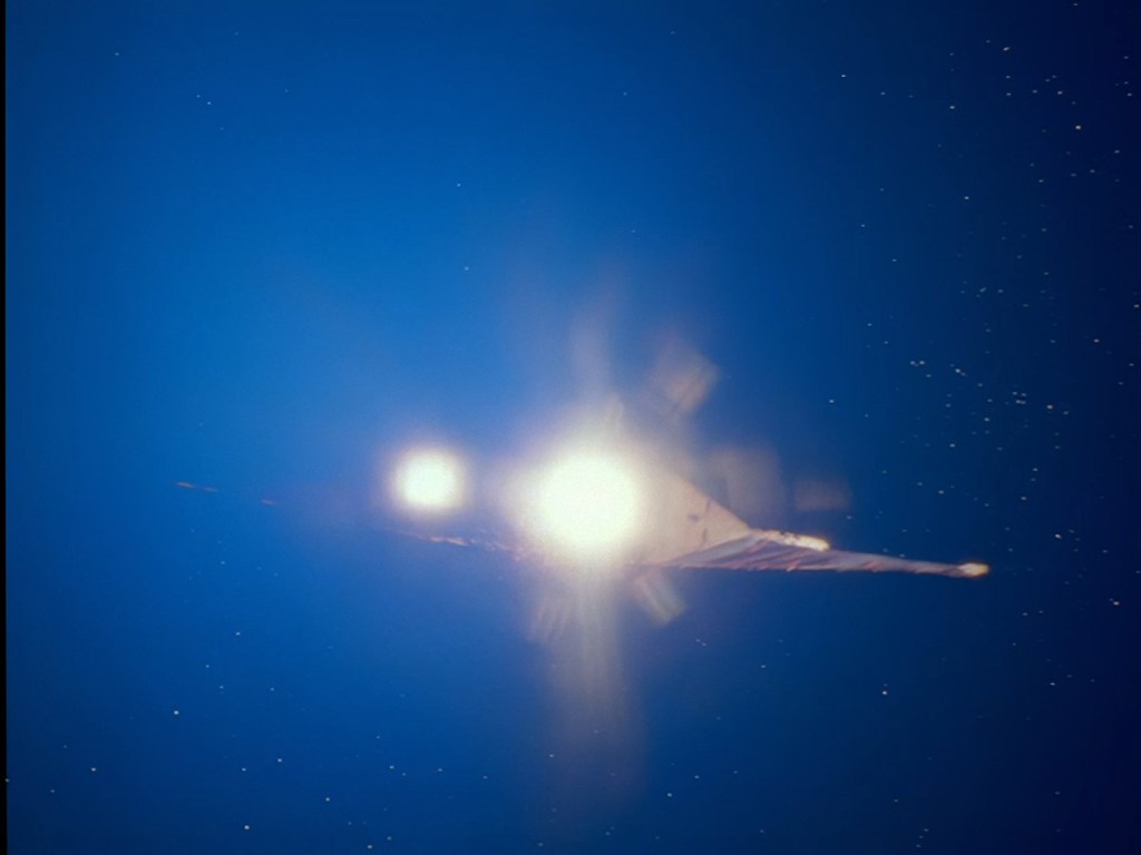 Sometimes the composition of film elements on top of other effects aren’t quite so seamless. The fiddly sticky-out bits hanging from the bottom of the space station reveal something of a black outline around the model. That’s being really nit-picky though because it’s still 98% gorgeous.