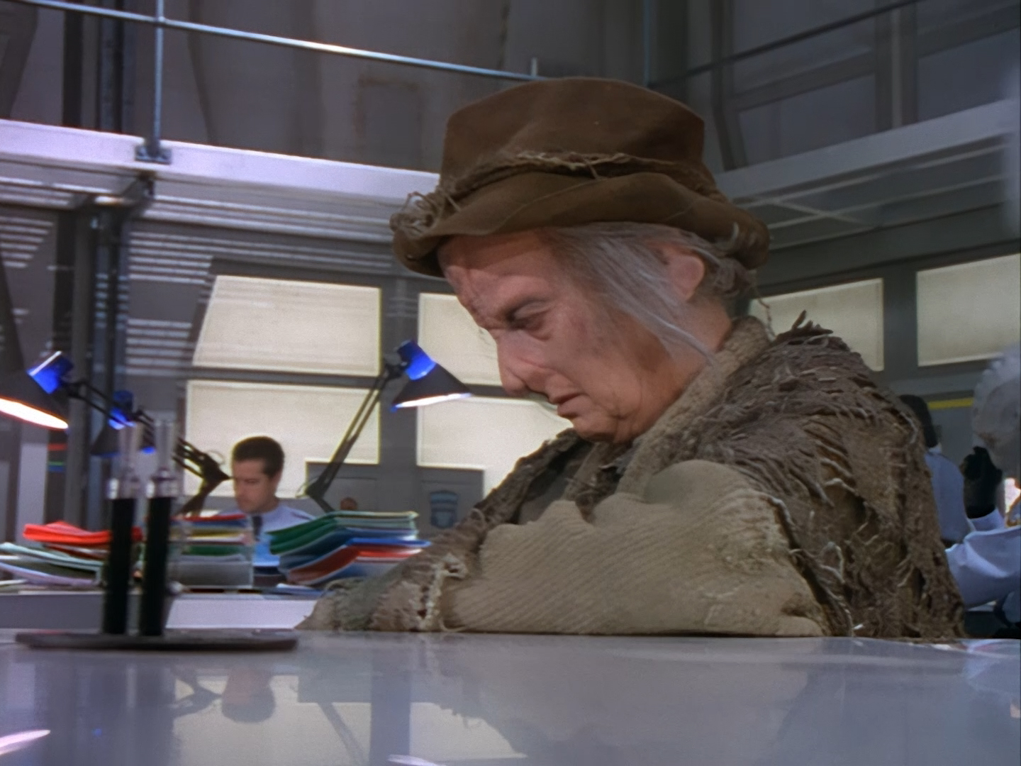 Castle and Took are partnered up just like Brogan and Haldane, except this week they get to handle the most B-plot of all B-plots. A mysterious “Bag Lady” played by the late Matyelok Gibbs has been brought in and nobody knows what to do with her because she has a major case of amnesia. I suspect she’ll probably regain her memory just as soon as the episode needs to pick up steam again.
