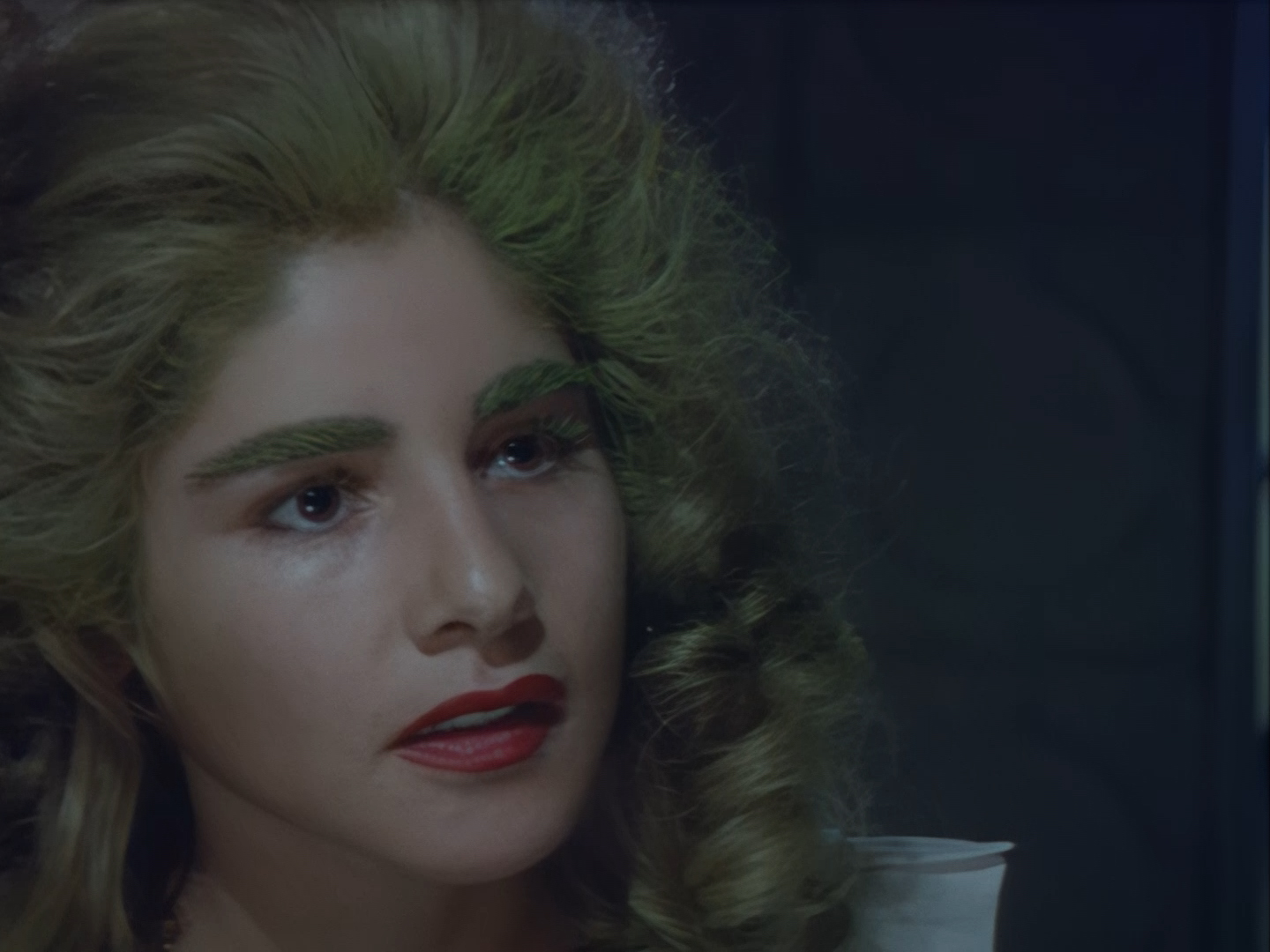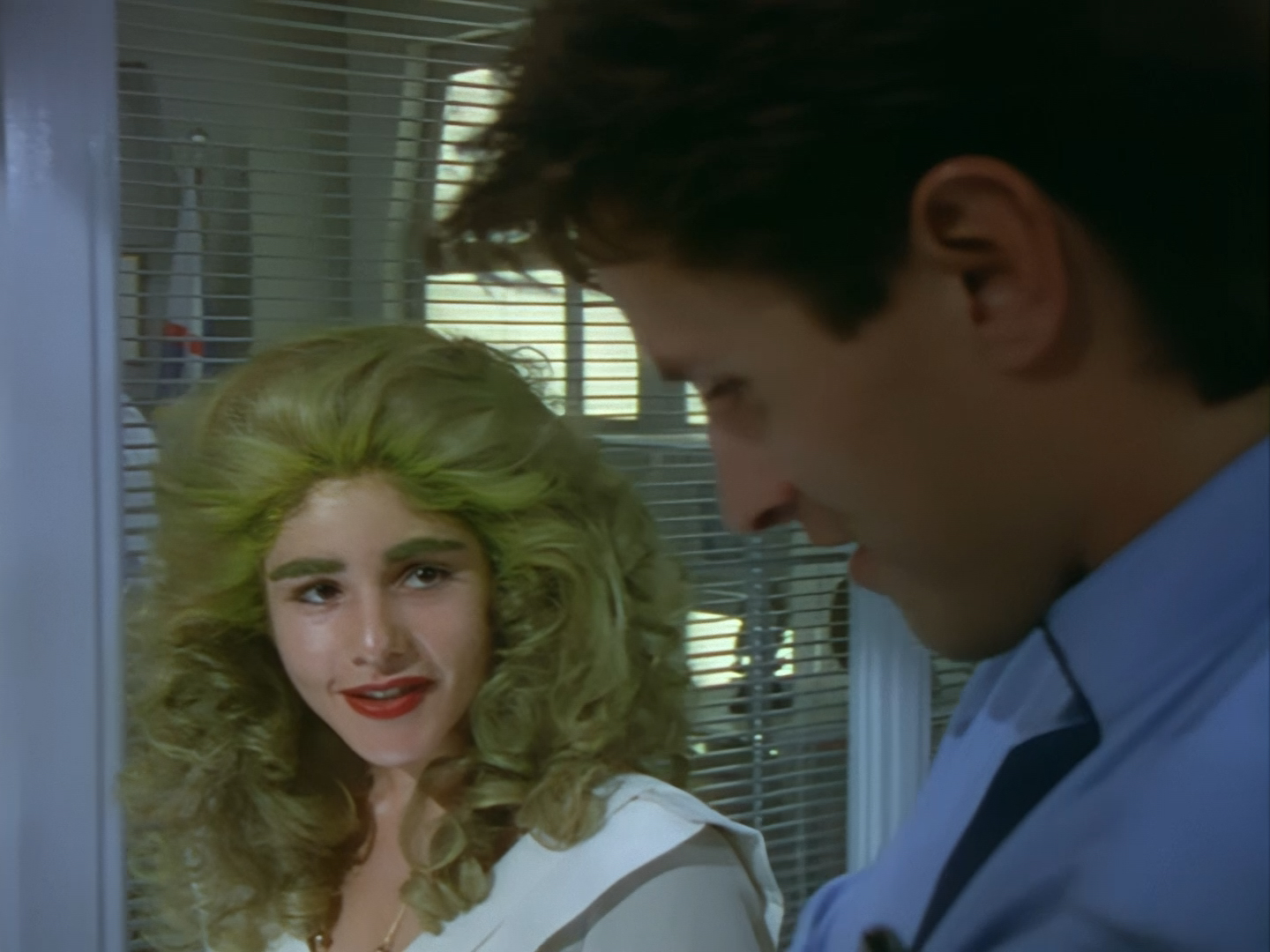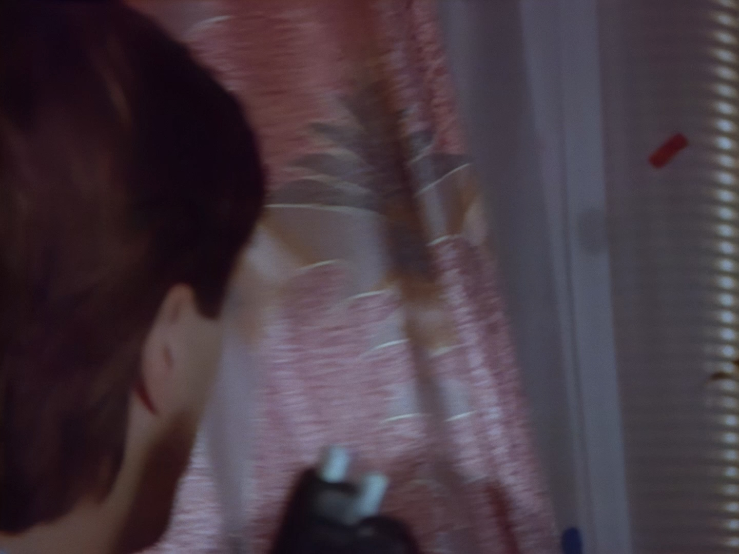 She agrees to wait around to look at Orrin’s pictures. The re-voiced dialogue makes Aleesha sound thoroughly uninterested, but I think Lana Citron is trying to play the scene with a certain amount of nervousness which would be appropriate given the ending we’re inevitably hurtling towards. The shot fades out quickly, almost as if the editor doesn’t want to give away anything just yet.