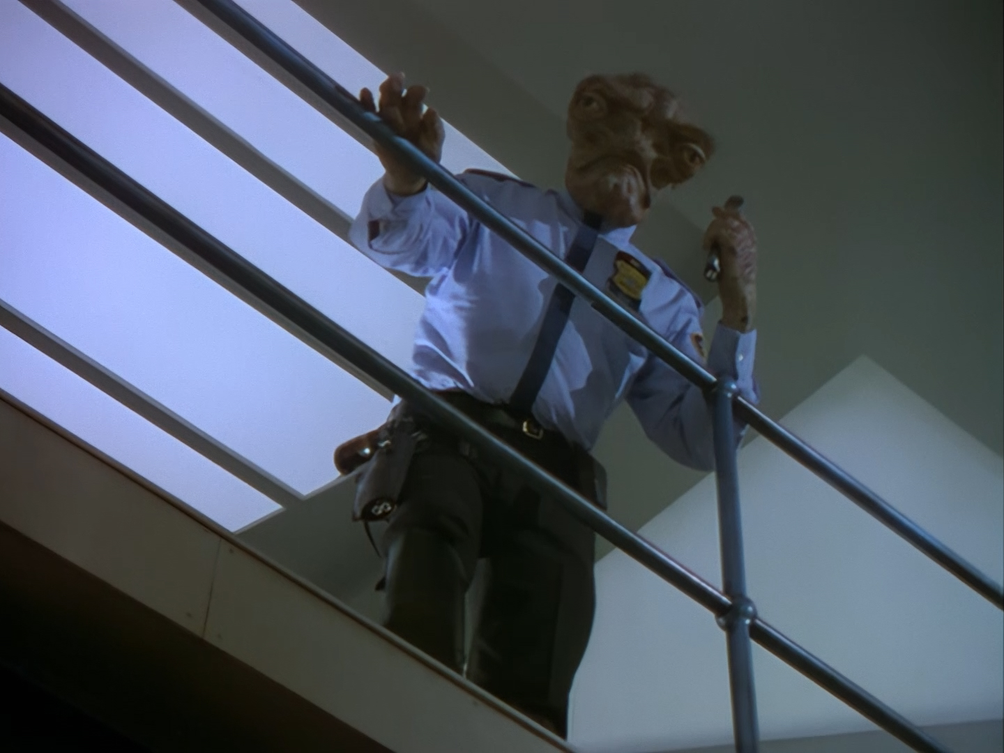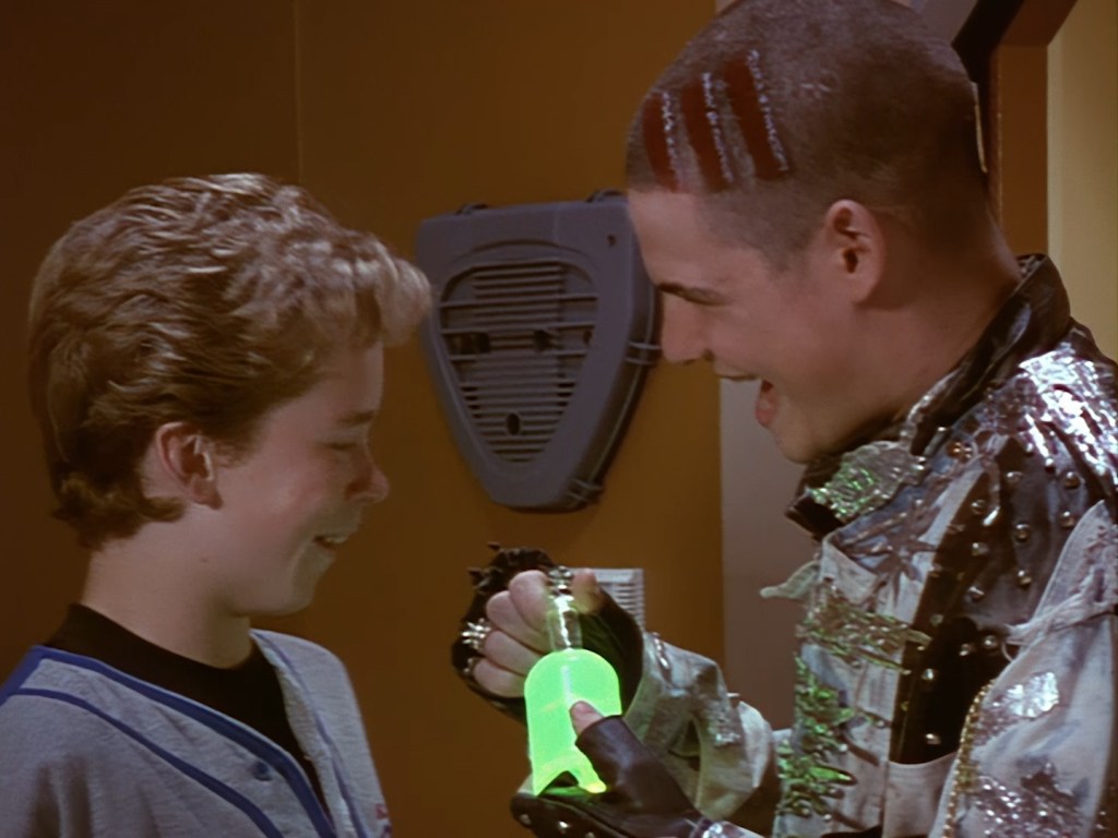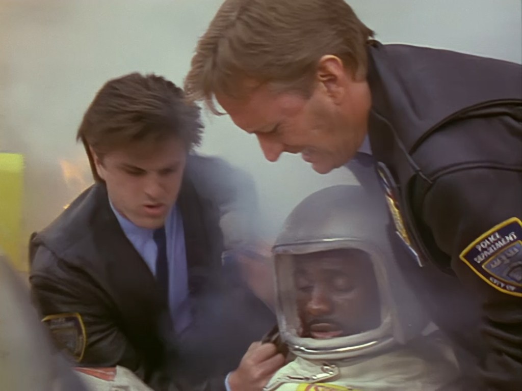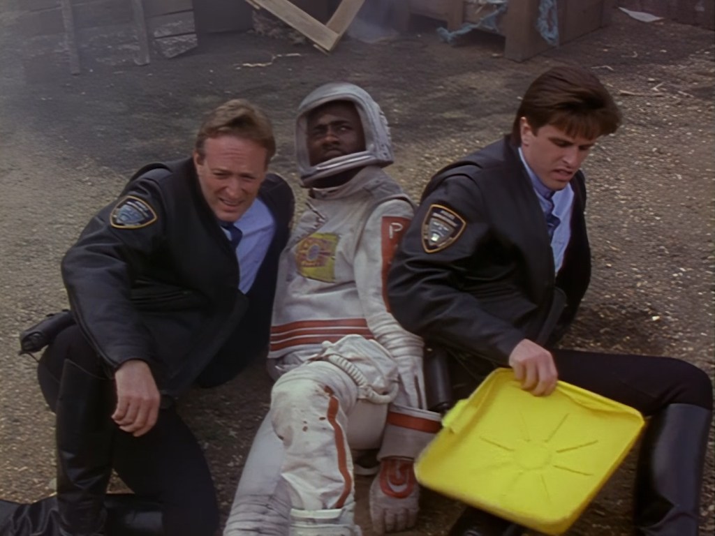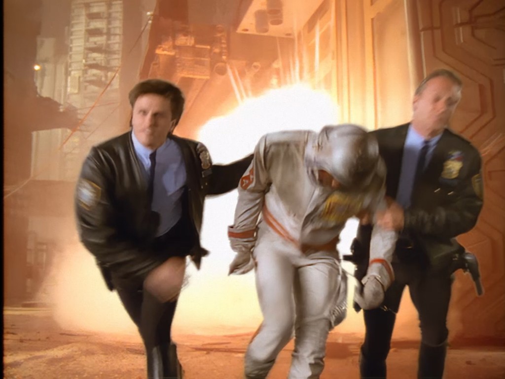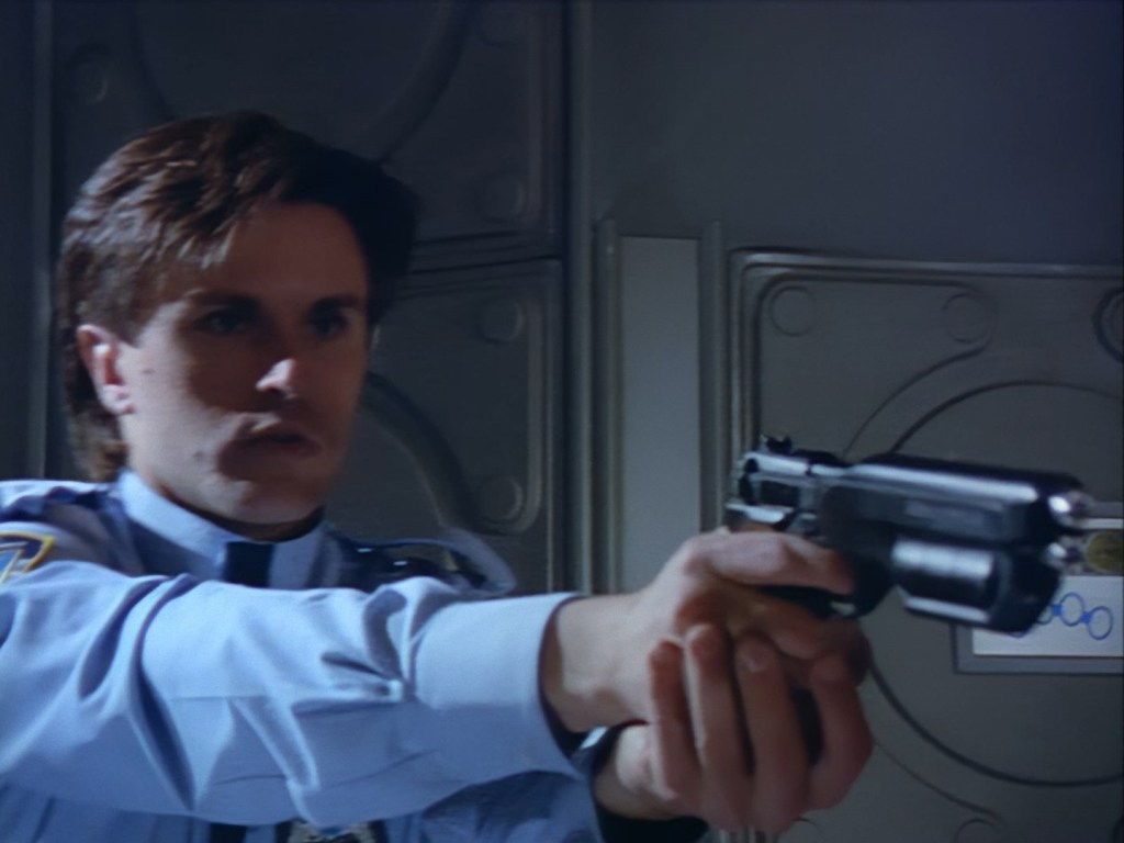 Ummm… this guy… well… he’s not actually in this show. This is a clip from the 1991 Space Police Reloaded trailer which was put together by Mentorn and Grove Television to sell the series by combining footage from the 1986 Star Laws pilot with newly shot material. That’s a whole big rabbit hole that I promise we’ll explore later.