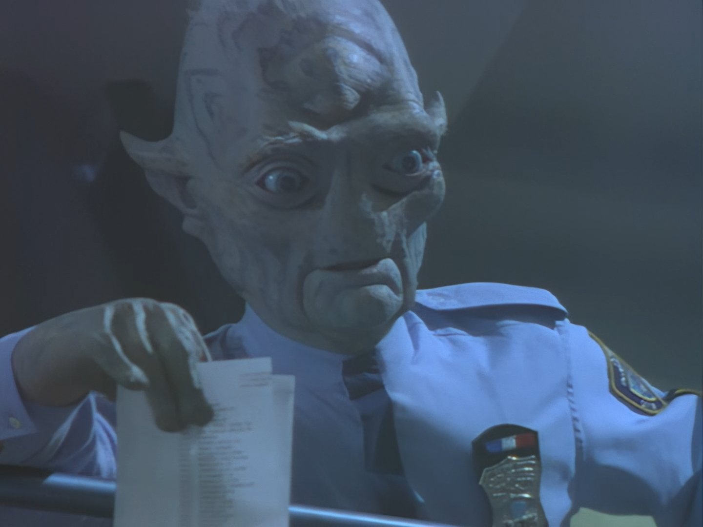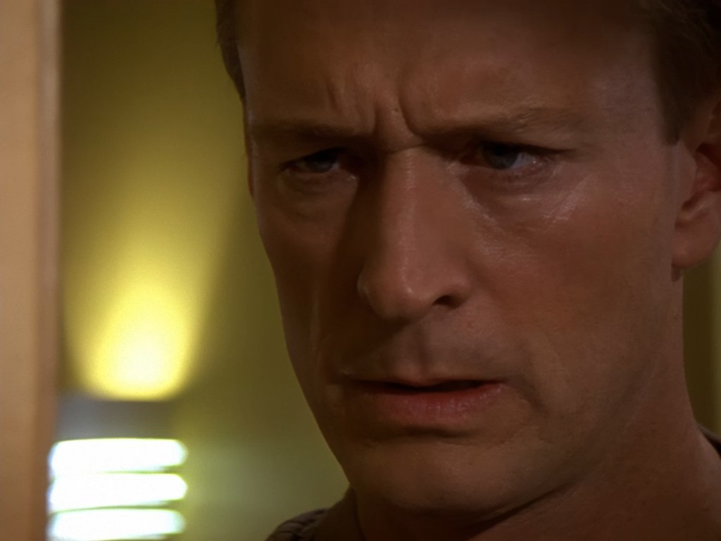 Come on Ted, you’re a better actor than that. Please don’t pin the entire twist of the episode on that particular facial expression. Yup. Here we are. Lieutenant Brogan and his band of wise-cracking intergalactic police officers were almost stumped by an alien shape changer, but thanks to HIS KID’S SCHOOL PROJECT ON ANCIENT GREECE, Brogan stumbled upon the one clue that was under his nose the whole time!
