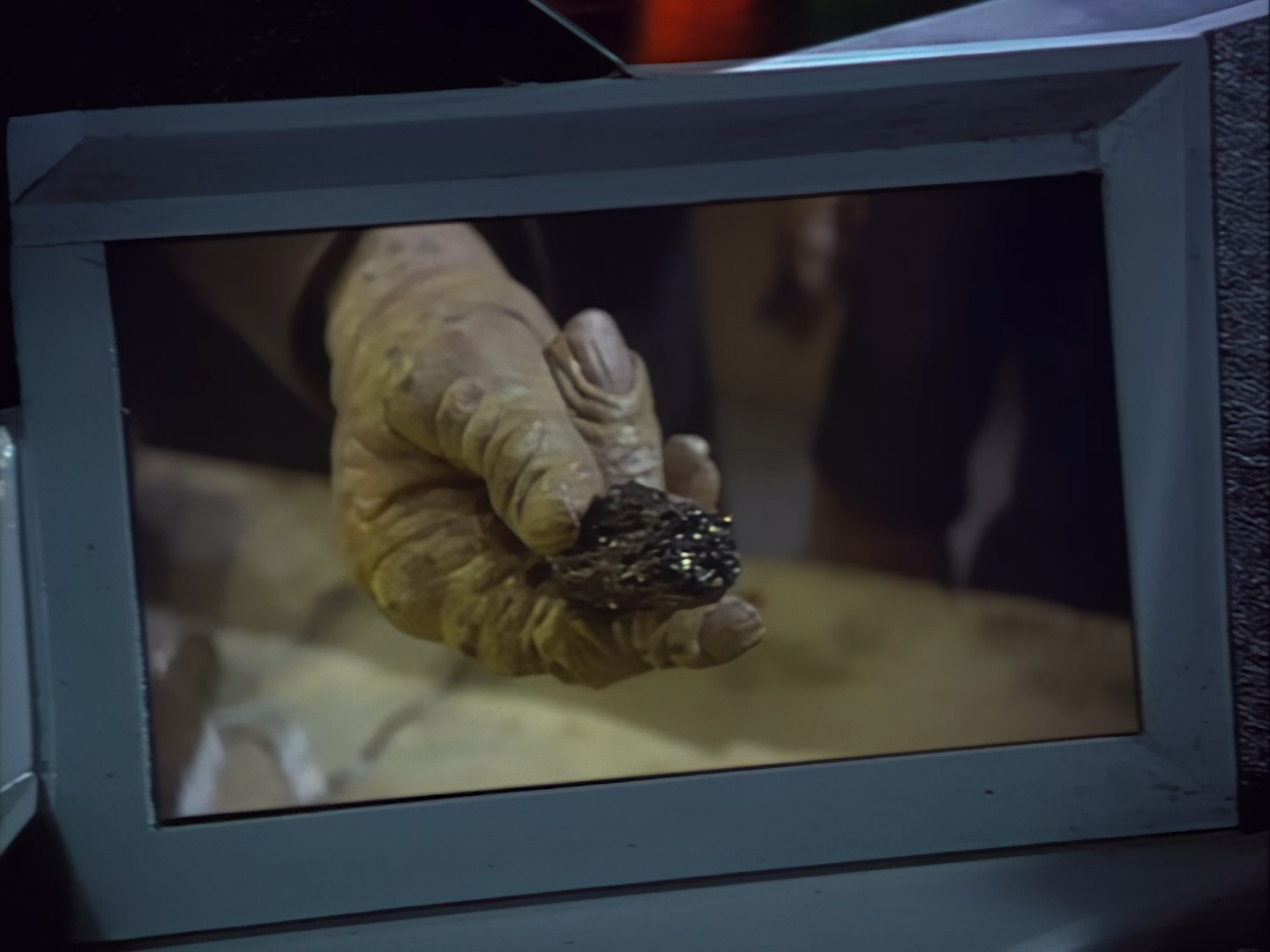 … which is suddenly not quite so maggotty when an actor gets near it. Fascinating. Underneath the dips, we have our Black Crystal. So the creep under police watch with two cronies and a trophy girlfriend was up to no good after all?! Well boil my eyes and call me a Creon.