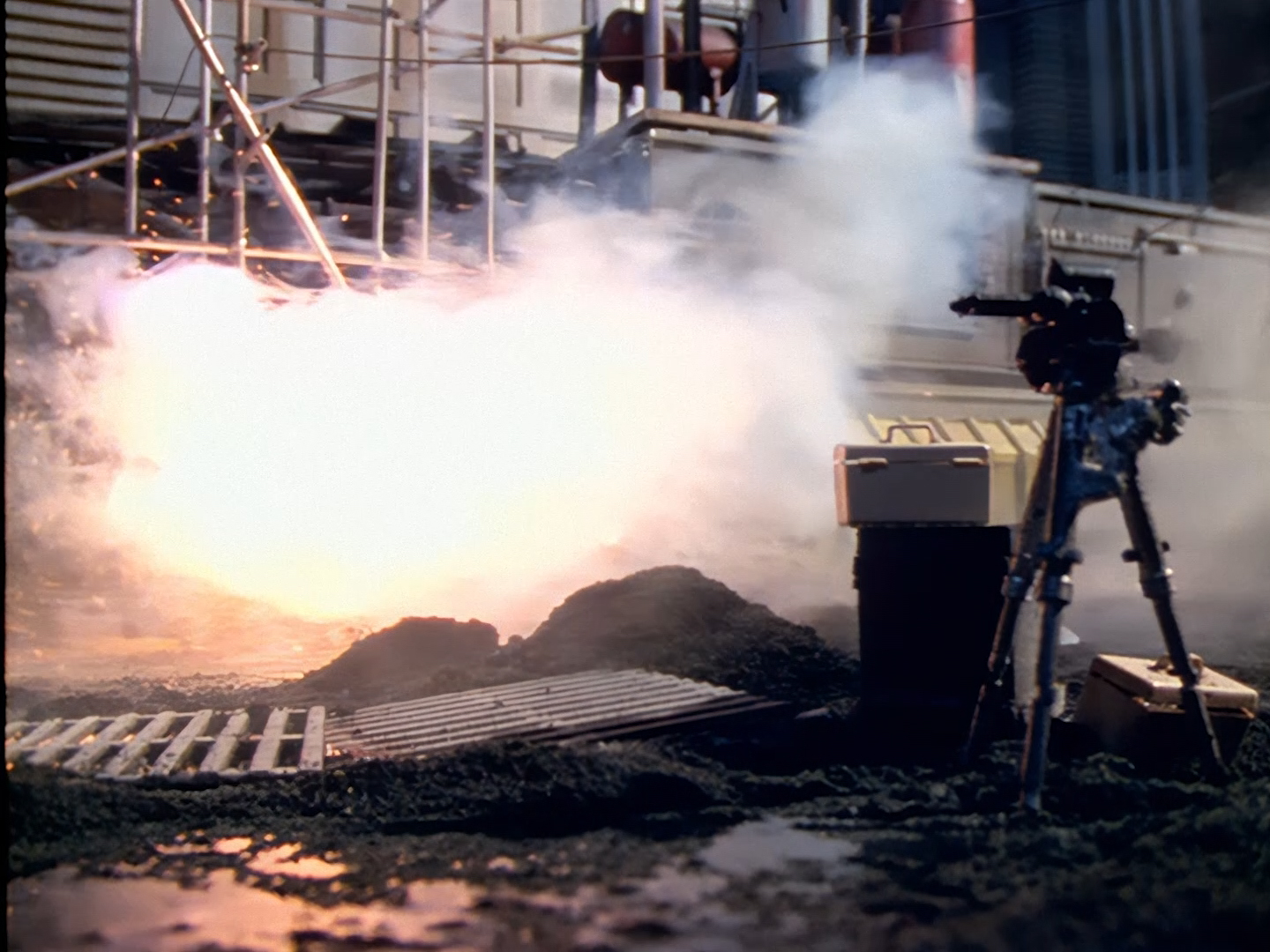The director attempts to do something a bit different by filming this exchange between Podly and Castle from underneath the gantry. And yes, I can confirm it certainly is a bit different…
