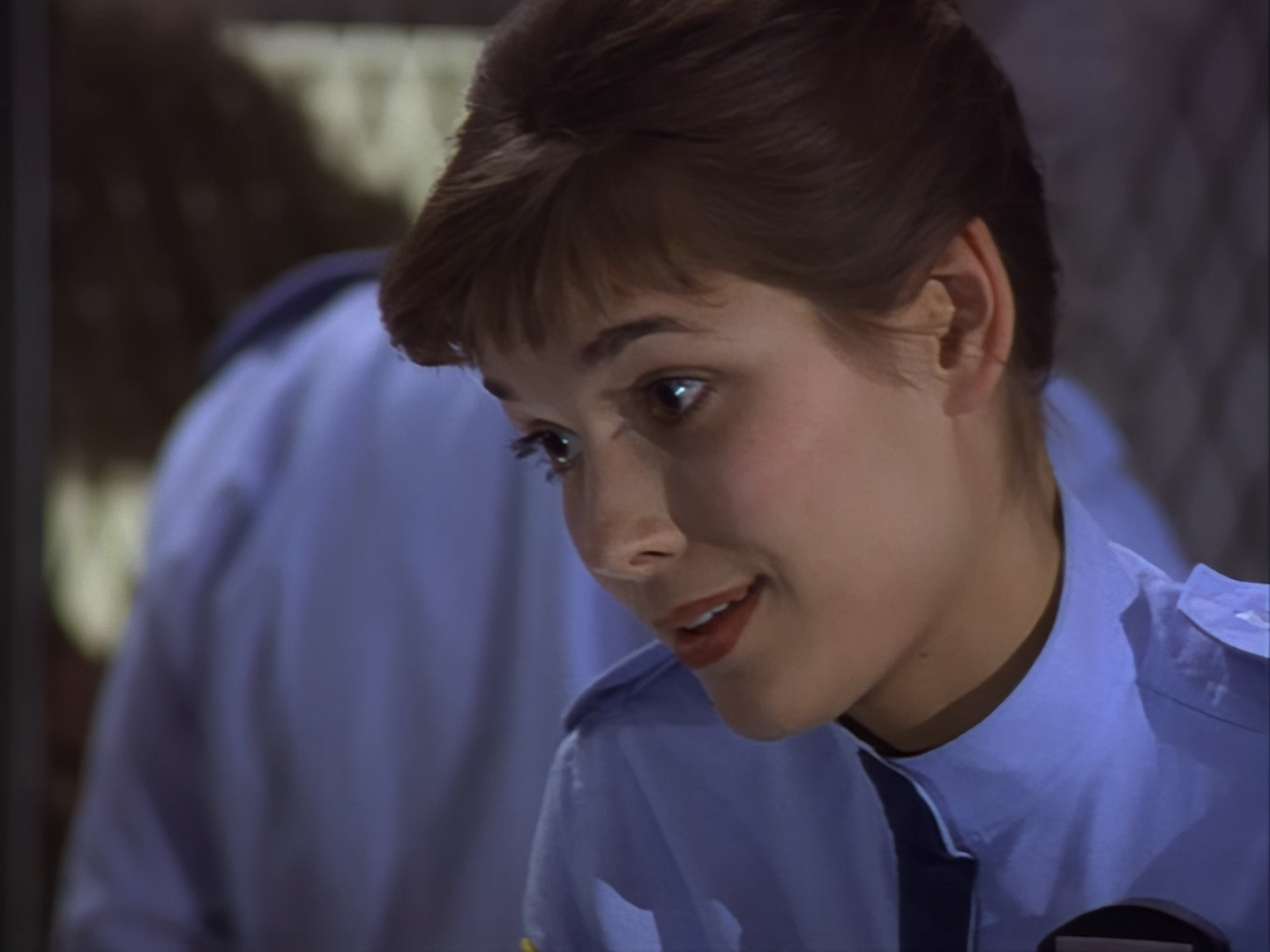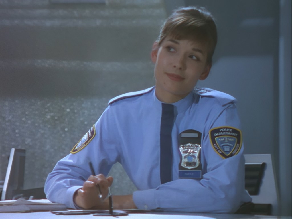 With not so much as a hair out of place, Aleesha saunters down the corridor. Again, I feel like some of the emotion behind Lana Citron’s performance has been stripped out by the way Moir Leslie revoices her. Haldane has no trouble accepting that Aleesha was just worried about him and orders her to the main office. Of course, one does wonder why Haldane was allowed to leave her wandering around the station on her own during that flirty scene he just had with Officer Castle.