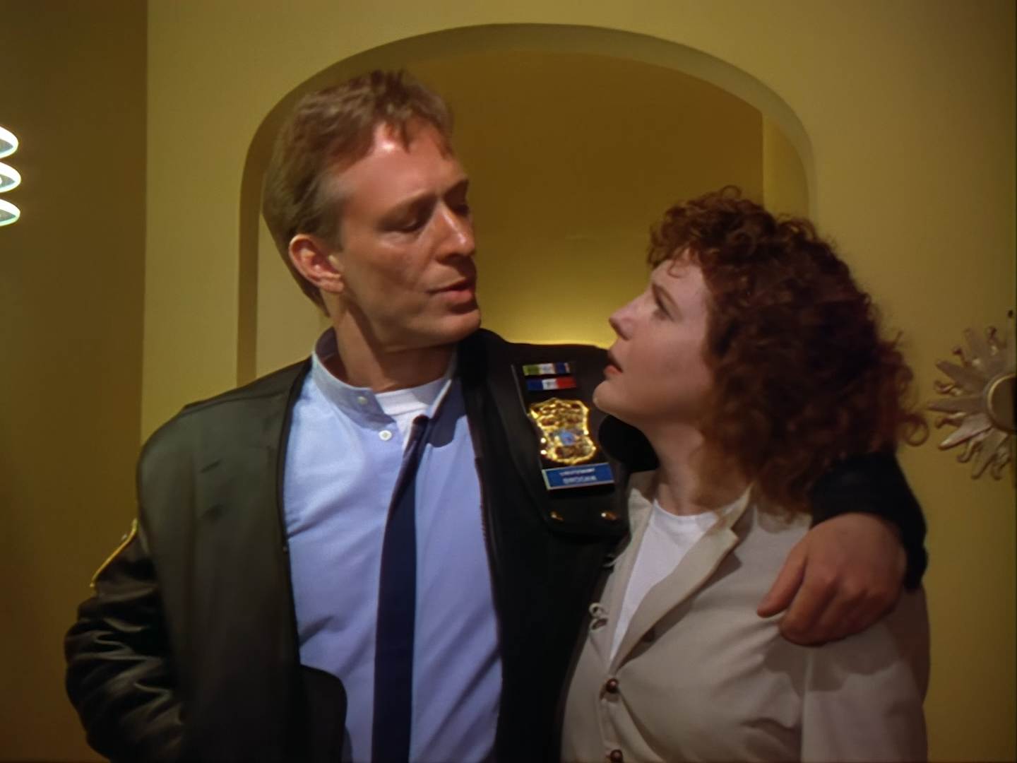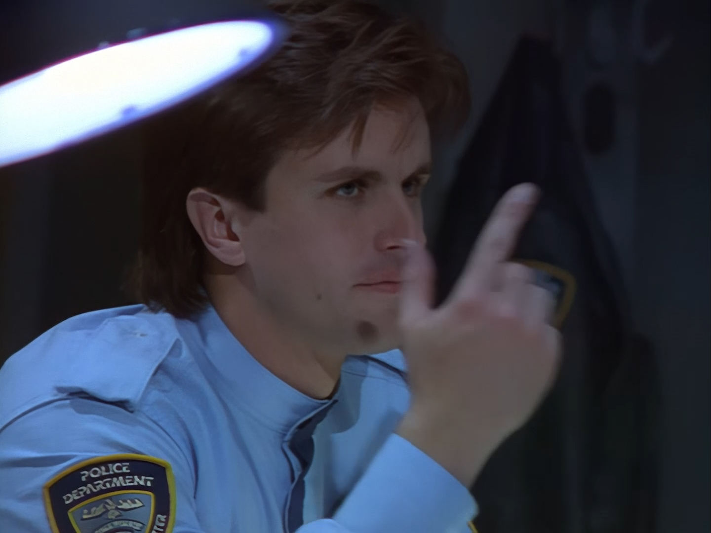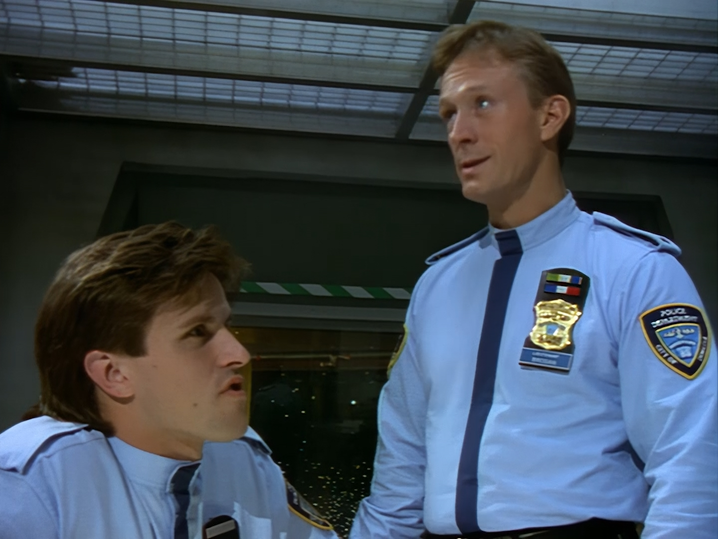 Aleesha yells for “Jack!” as the handsome young officer dashes off to catch a crim. Brogan gives her a stern telling-off for being on such chummy, first-name terms with Officer Haldane. Clearly, no situtation is so urgent for Brogan to let a simple slip of protocol go unchecked… a character trait I’m sure his wife adores…