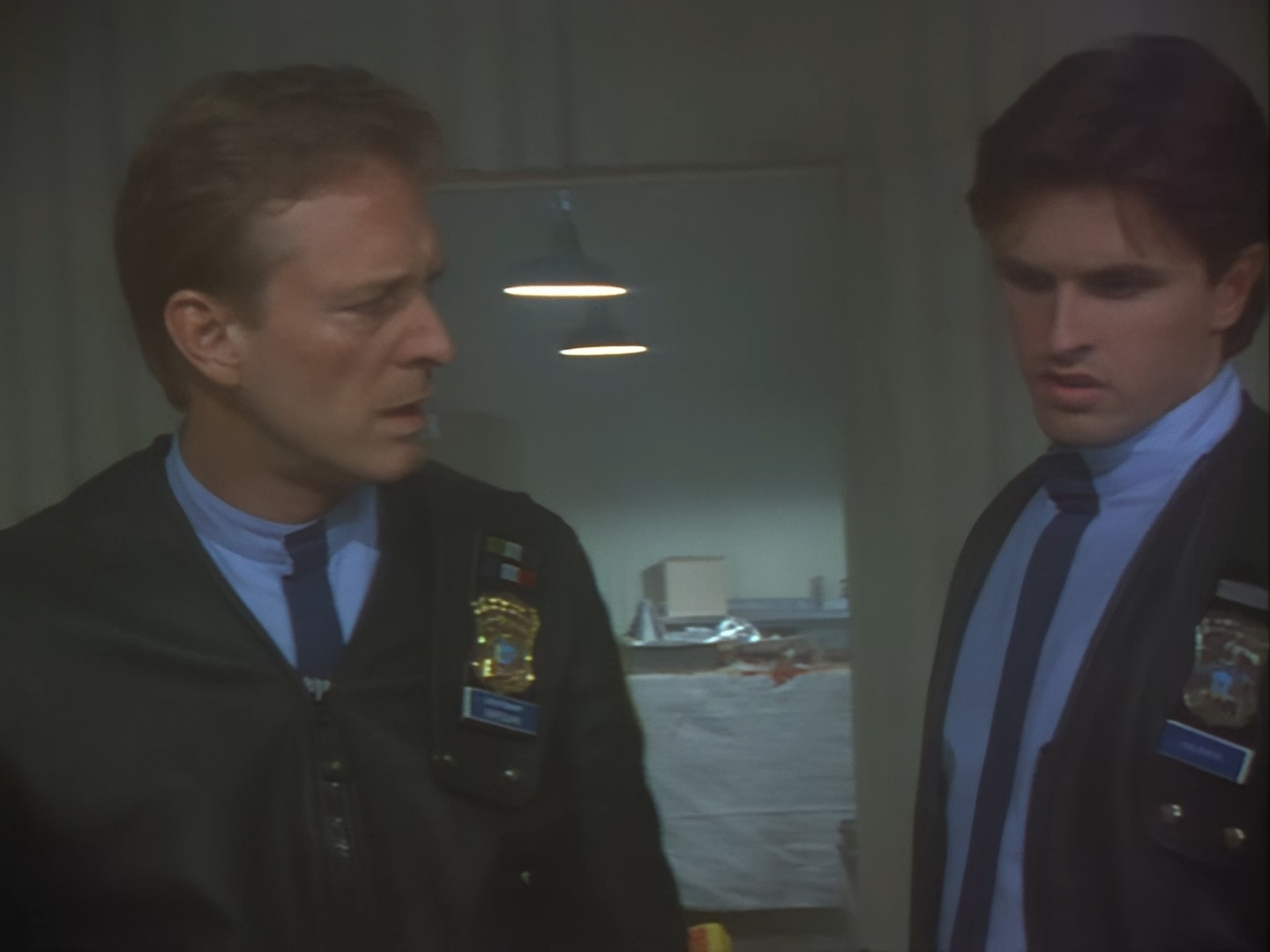 As unintented opening scenes for the entire series go, this one actually does okay. An exasperated Haldane confides in Brogan that his date last night didn’t go to plan. Okay, not the most original conversation to be committed to the screen, but that’s sort of the point. It establishes that these are ordinary guys with ordinary problems.