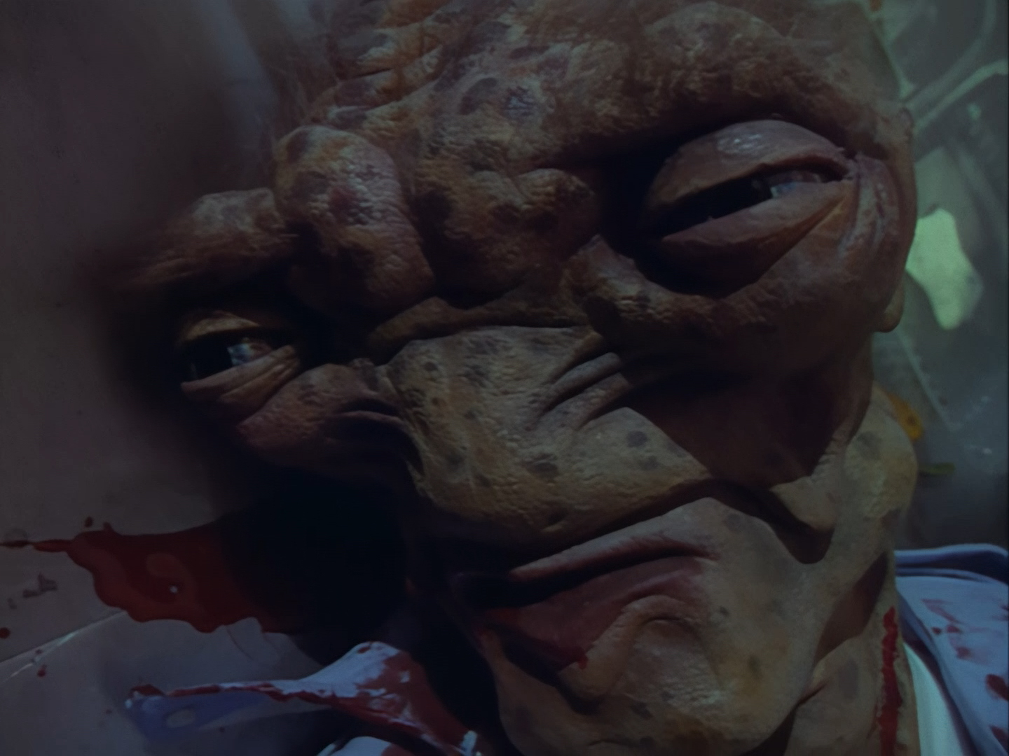 According to Rob Thirtle, who played one of the dead villains in this scene alongside Andy Dawson, there was so much stage blood used on the Creon masks that it started to leak through the creature’s eyes into their real eyes. That probably should have been an indication to the production team that they needed to ease up on the gore.