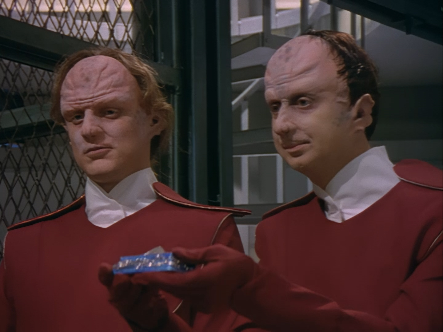 Two identical weirdos arrive. There’s a whiff of Star Trek about ’em. I don’t trust ’em.